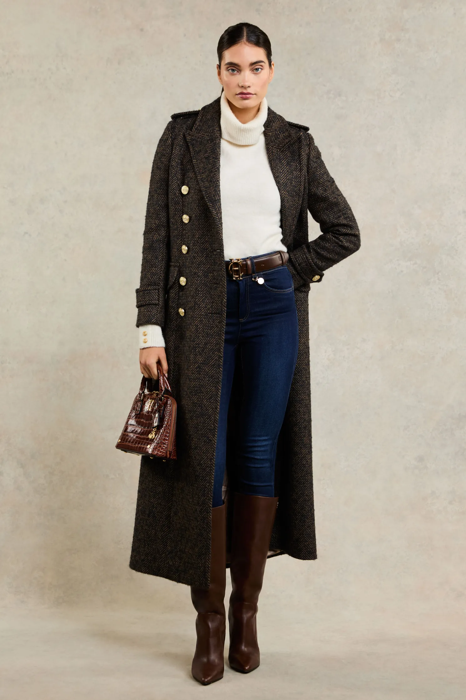 The latest edition to our jean collection, each pair has been woven with an ample amount of stretch to sculpt and flatter your silhouette. Created with Thermolite Polyester Yarns to trap air and hold warm, these jeans are a cold-weather essential. With an internal fleece lining, high waisted fit, and back pockets, the jeans have been detailed with our iconic hardware.