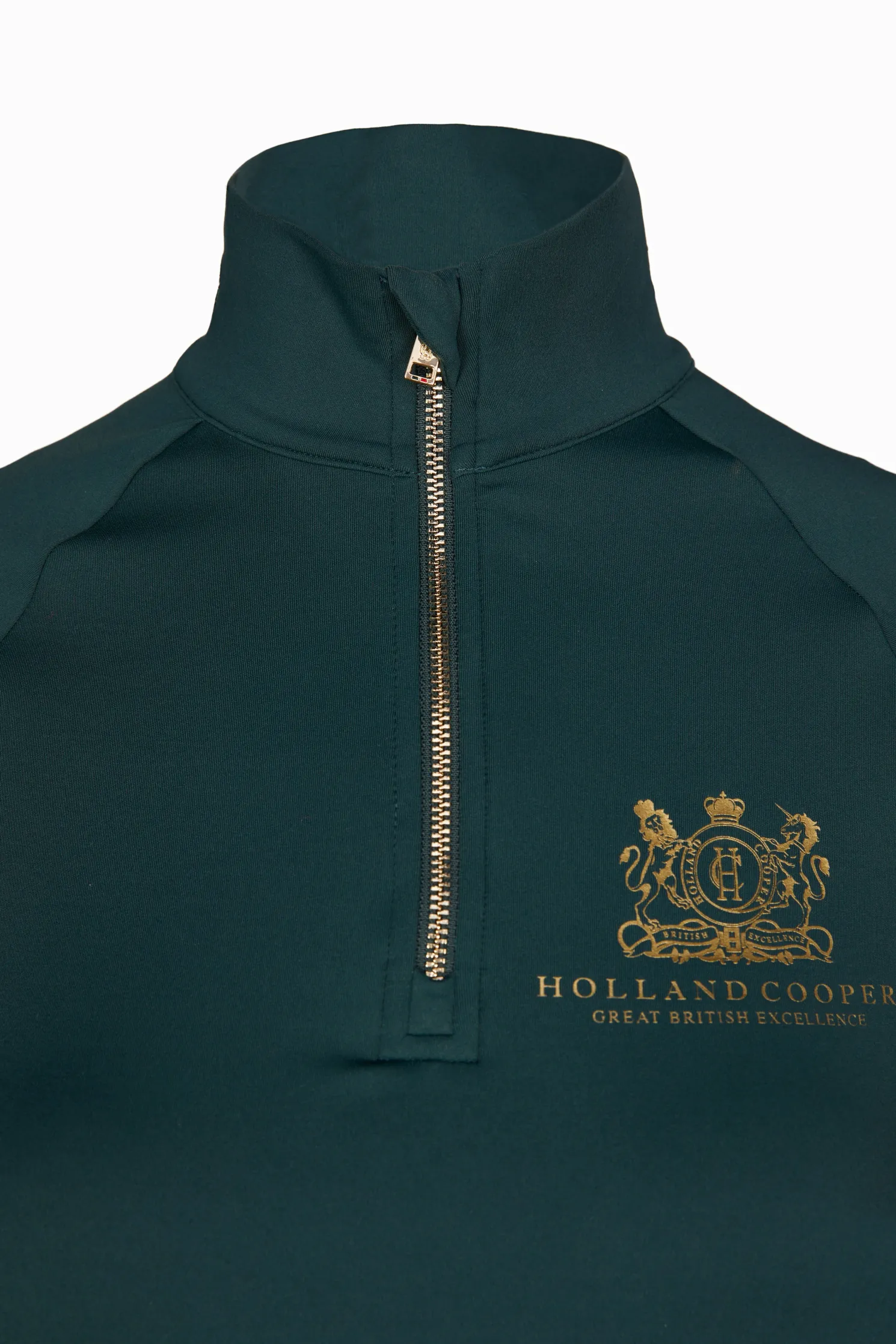 Our technical riding tops are expertly crafted with practicality and form in mind, our base layer offers warmth and comfort hand in hand. Perfect for keeping cool in whilst training while providing an insulating layer during the winter. Crafted from a comfort stretch fabric for ease of movement. Detailed with our signature gold hardware.