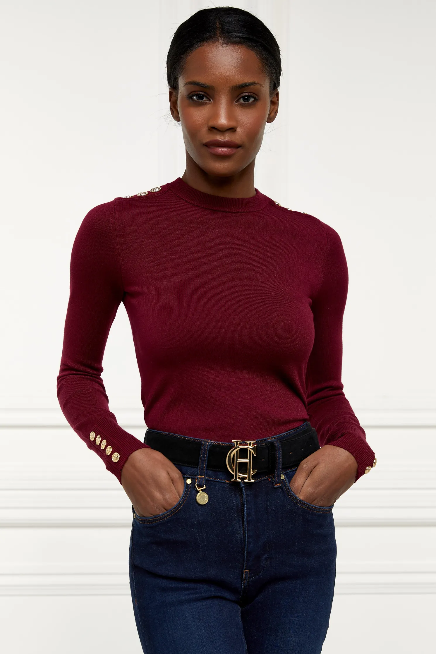 Introducing HC’s update to the buttoned knit crew neck, now with our signature hardware on both shoulders, to form part of your signature look. Complete every outfit with this stylish, classic and easy to wear wardrobe staple.