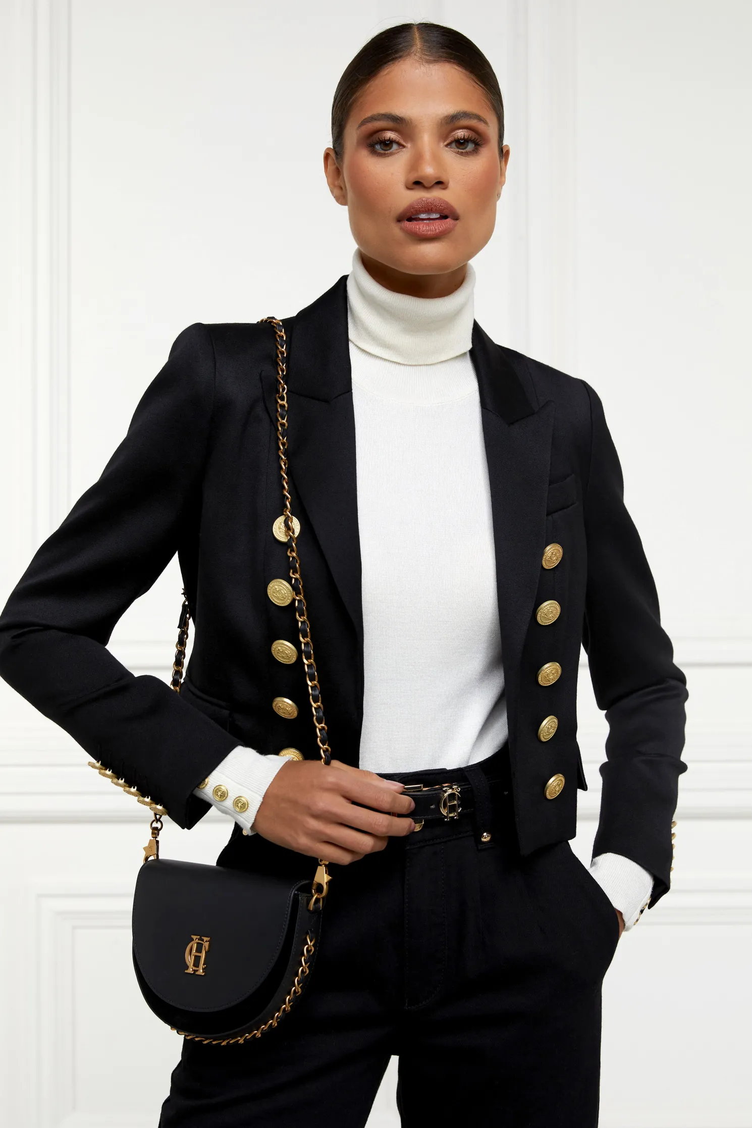 This half-moon design is crafted from premium cow leather with exquisite suede detailing, offering a luxurious and tactile wear. The base of the bag features elegant gold leather-wrapped chain detailing, which seamlessly transitions into a bespoke chain shoulder strap. Perfect for adding a touch of sophistication to any outfit, the Camden Cross Body Bag combines contemporary style with timeless elegance, making it a must-have accessory.