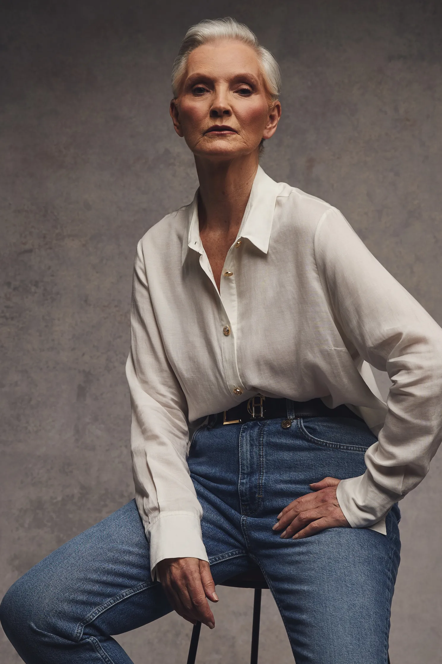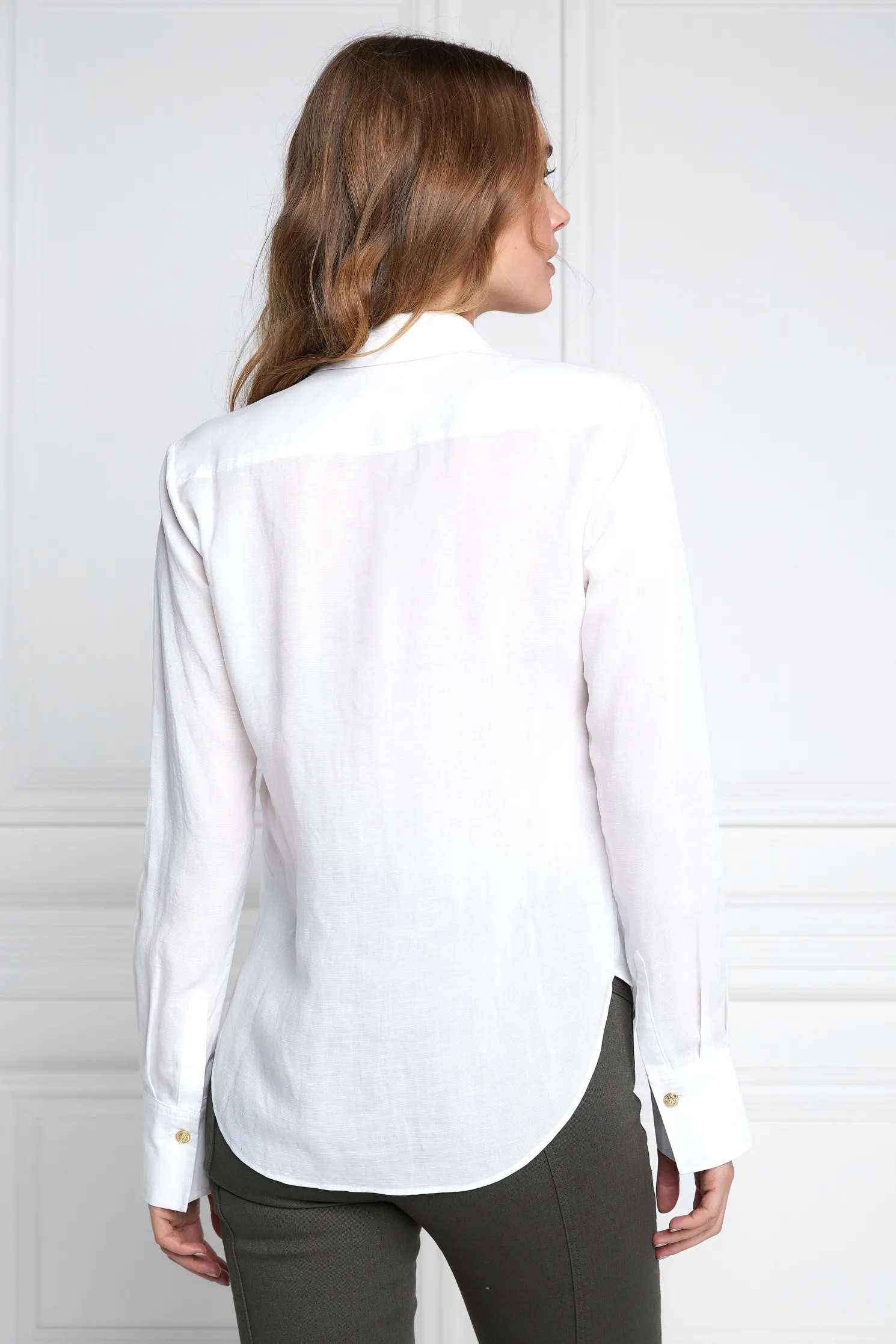 A beautifully relaxed fitting classic shirt, perfect for every womans wardrobe, this piece has been elegantly designed with french interior seams and pleated back for volume. Detailed with a single button cuff and signature metal hardware, this shirt is both timeless and versatile.
