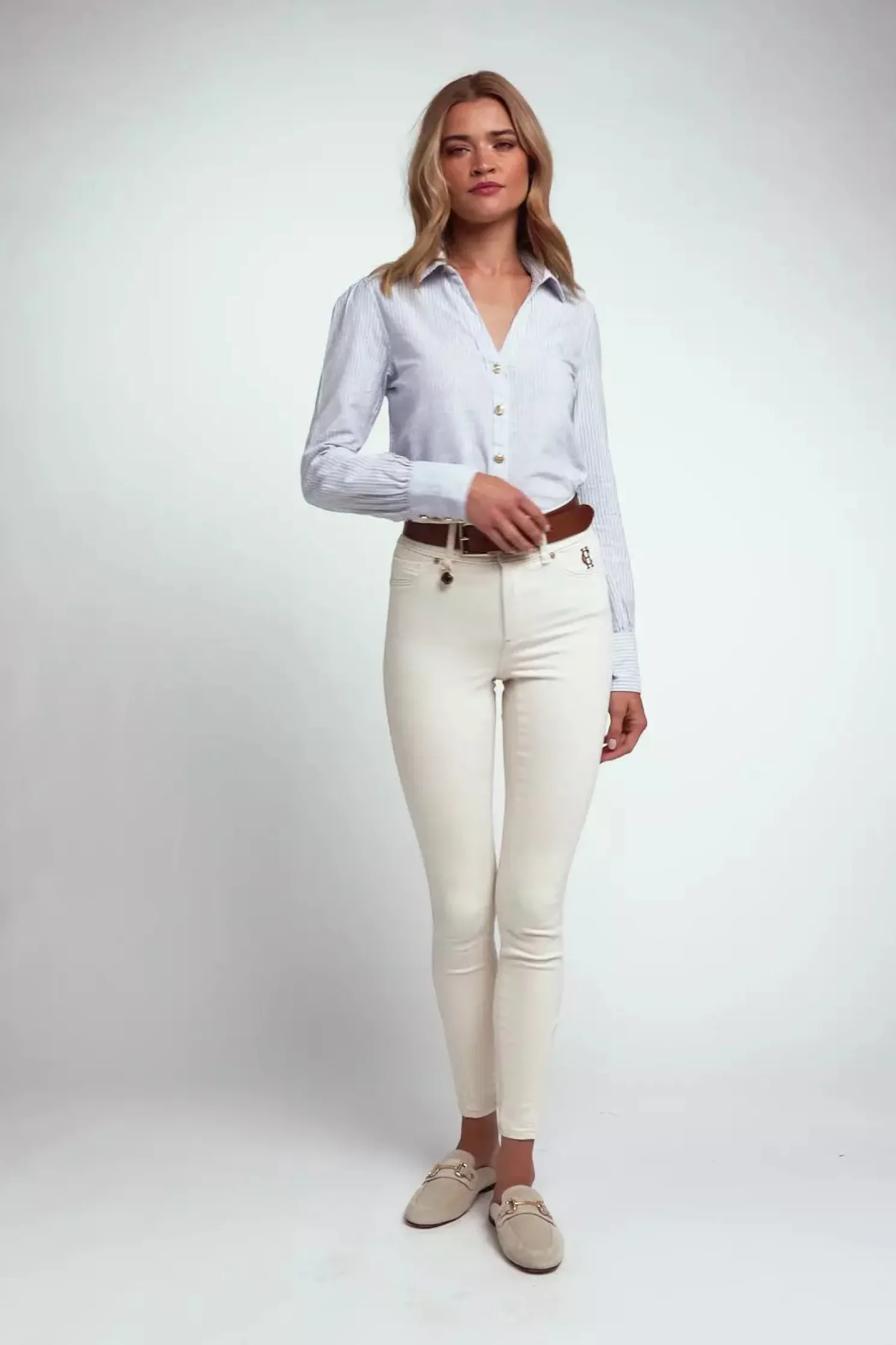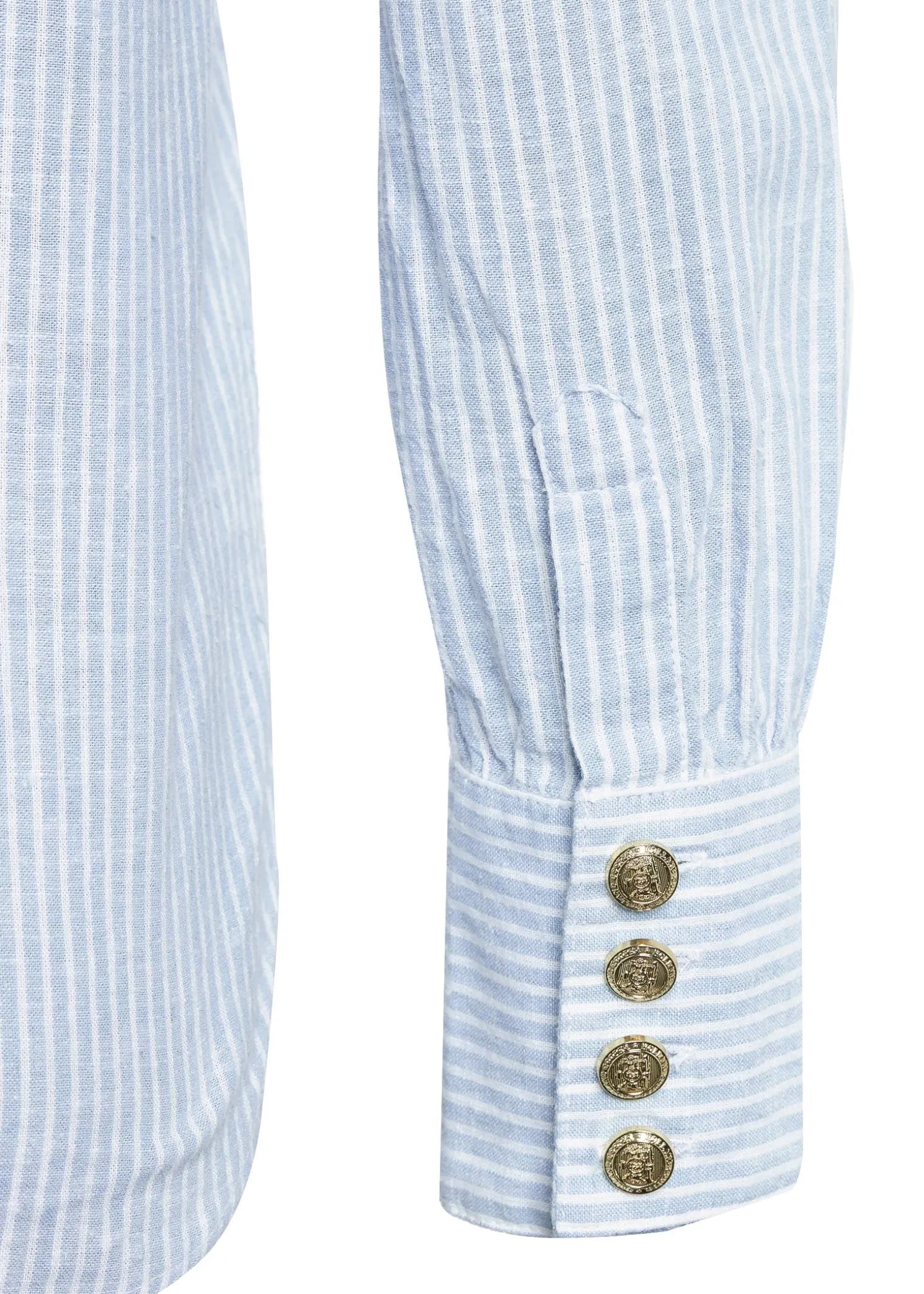 Crafted from lightweight cotton and boasting preppy-style stripes, this shirt combines a relaxed fit with a touch of sophistication. Featuring subtle details, the small embroidery on the front chest and our signature gold metal hardware elevate this traditional style.