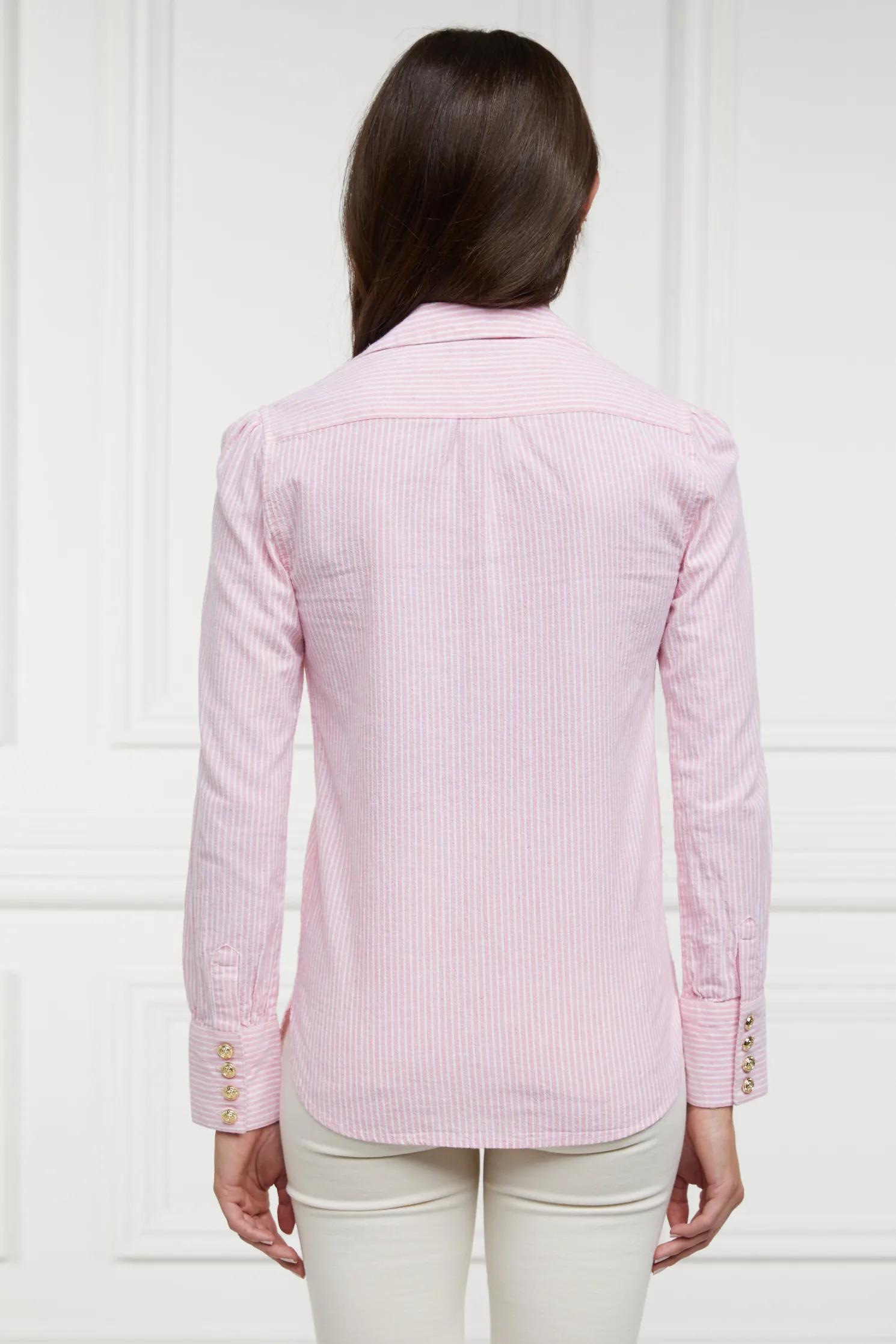 Crafted from lightweight cotton and boasting preppy-style stripes, this shirt combines a relaxed fit with a touch of sophistication. Featuring subtle details, the small embroidery on the front chest and our signature gold metal hardware elevate this traditional style.