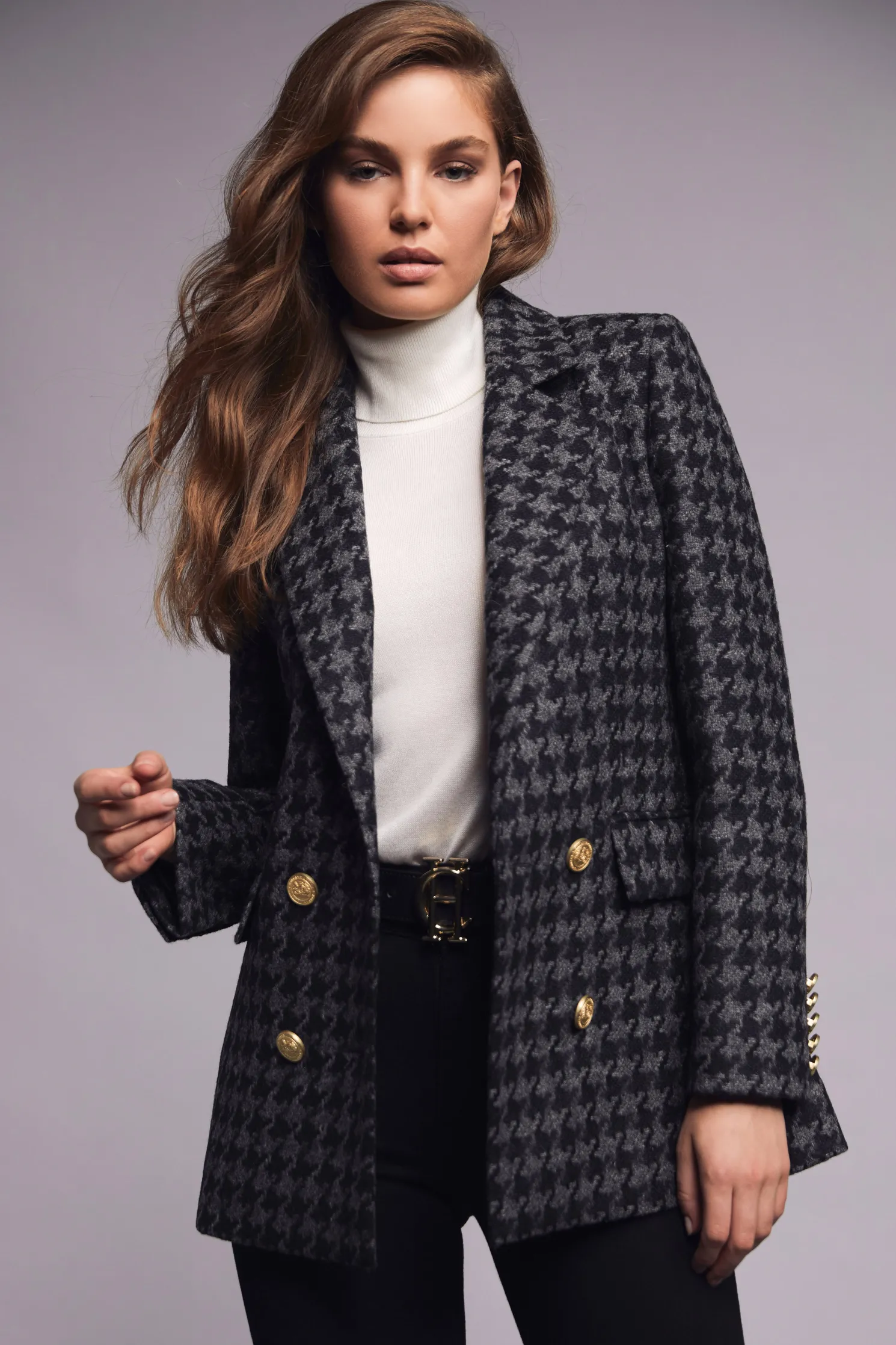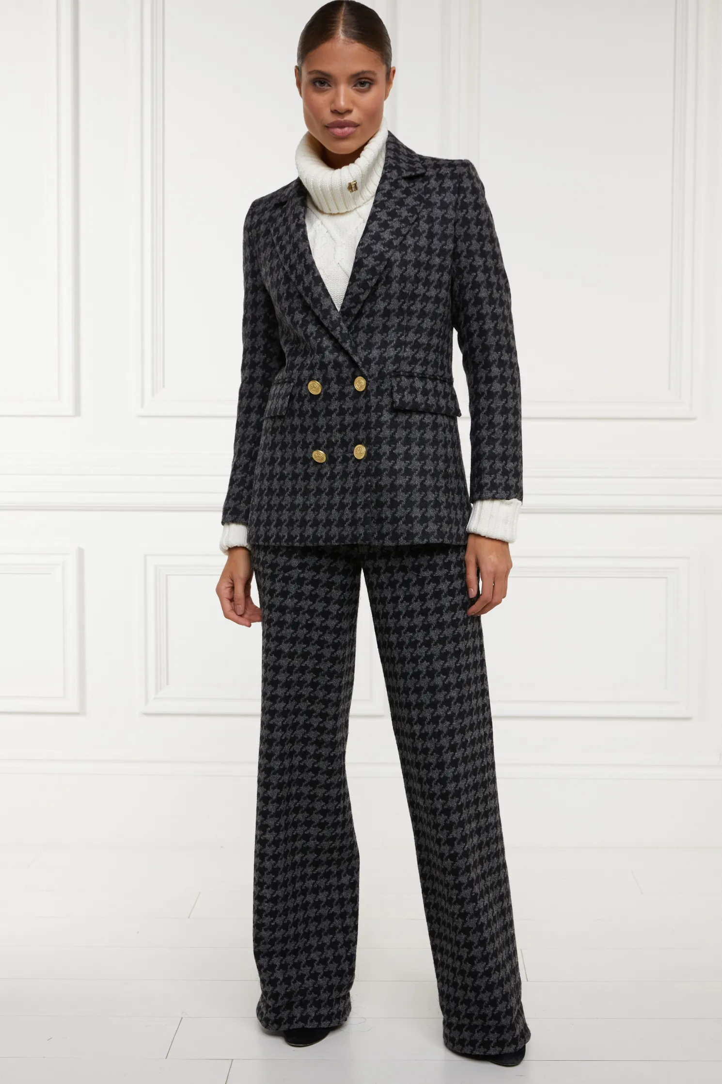 This longline double breasted wool blazer is a chic trans-seasonal forever wardrobe essential. Designed to create a sharp tailored silhouette worn open or closed. Fully lined with a luxury stretch lining for extra comfort and adorned with HC signature gold buttons on the front and cuffs. This blazer has been hand cut and made entirely in England using wools woven in the UK.
