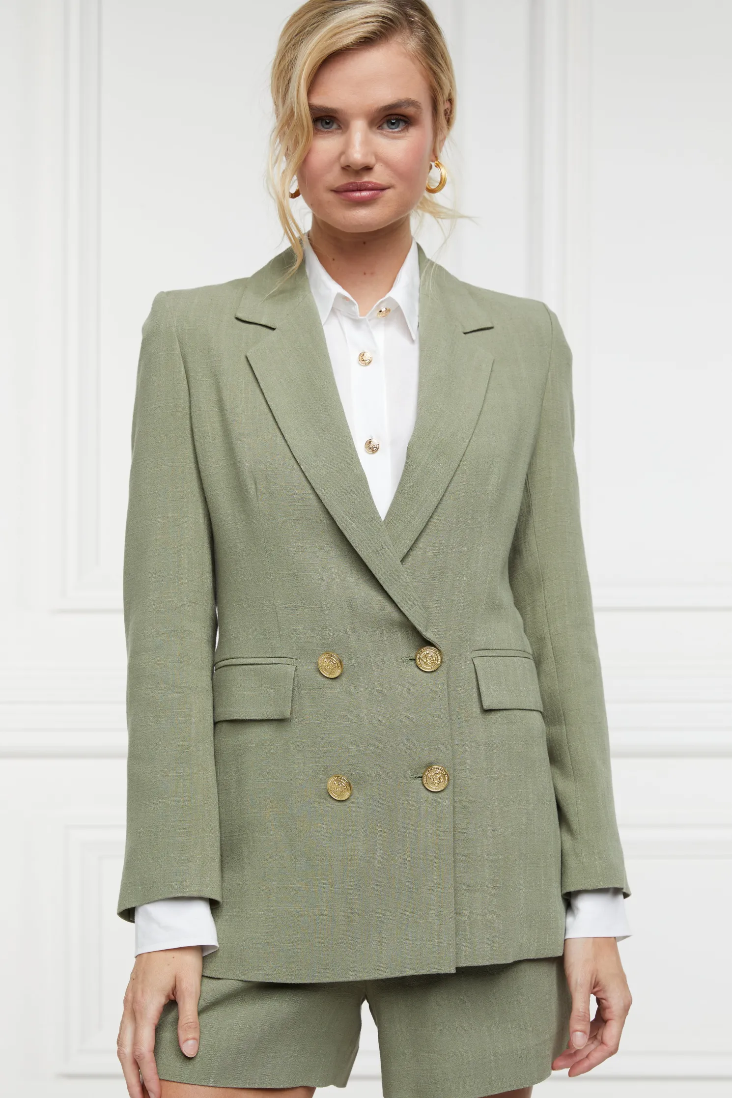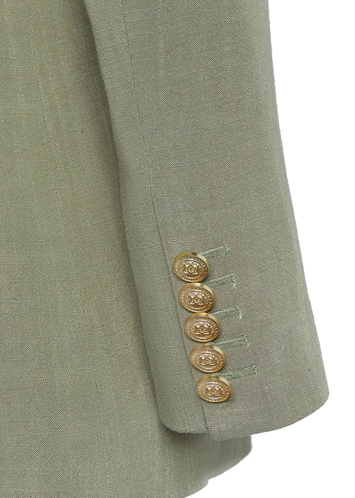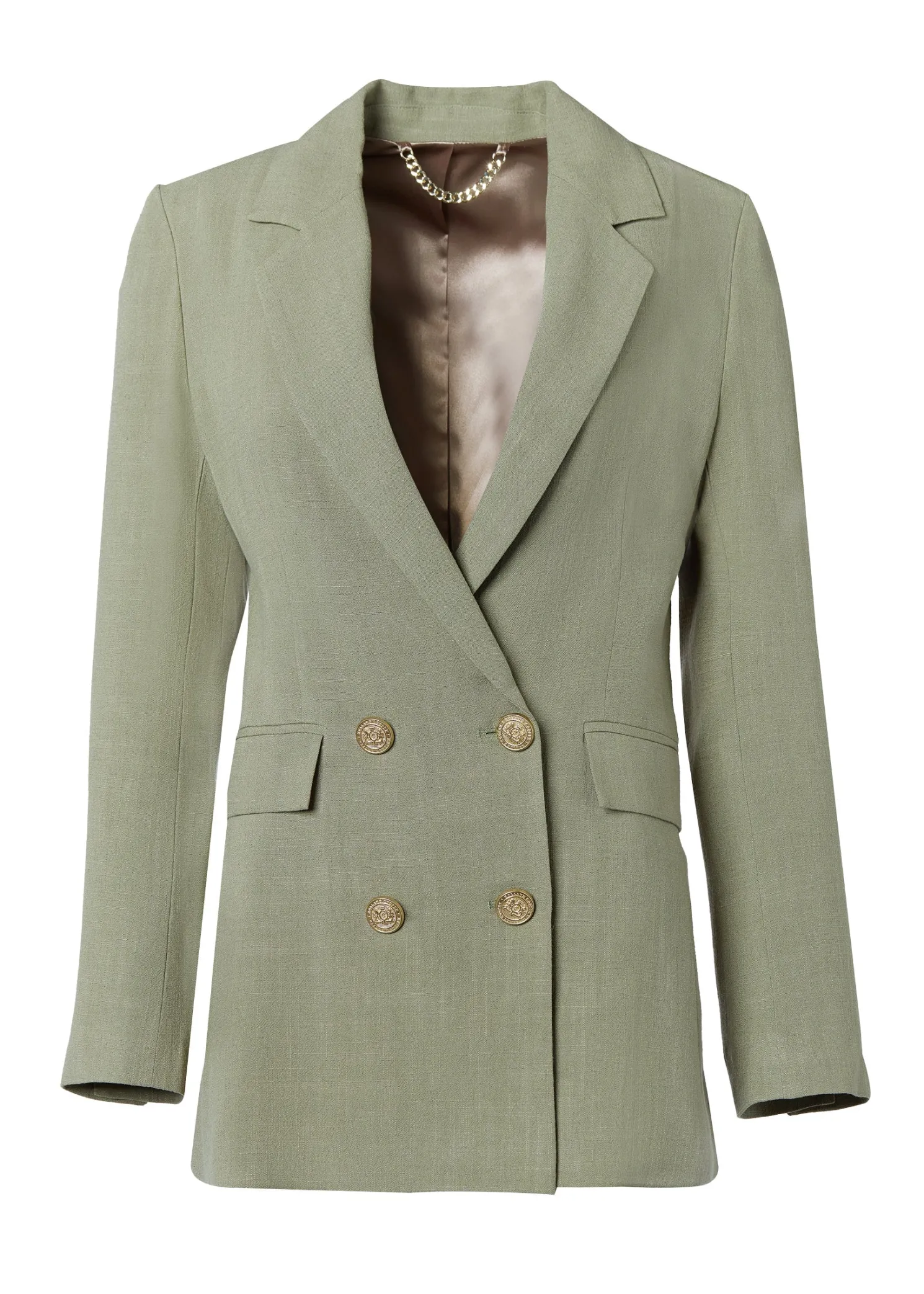Designed to create a sharp tailored silhouette worn open or closed, the Double Breasted Linen Blazer has been handmade in the UK. Crafted from a crease-resistant, lightweight and breathable linen blend & fully lined with a luxury stretch lining for extra comfort, this piece is a must-have for your summer wardrobe. Elevated with our signature gold hardware to the front and cuffs, the elegant colour makes for a feminine and contemporary statement. Wear yours with jeans or pair with our matching Tailored Shorts.