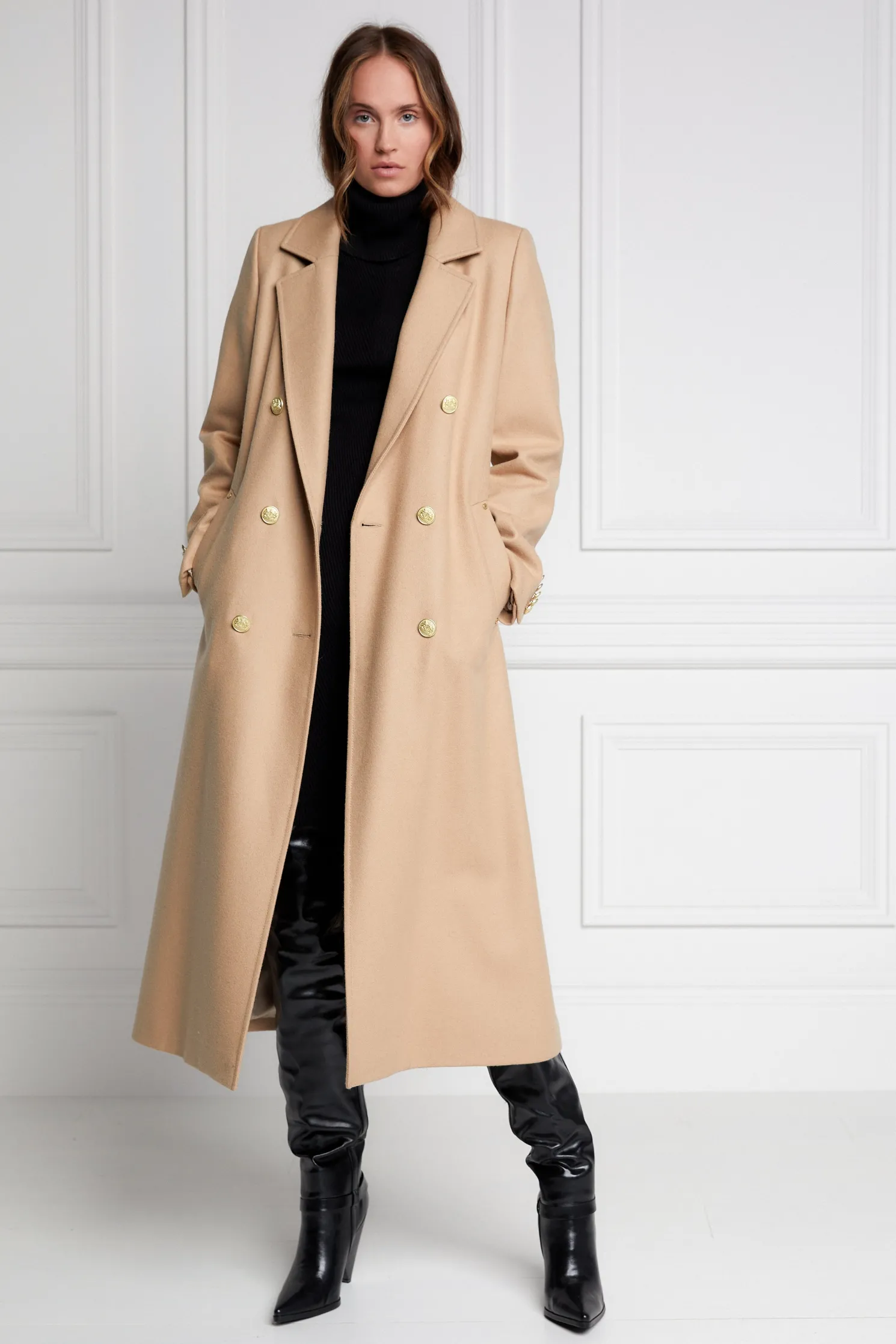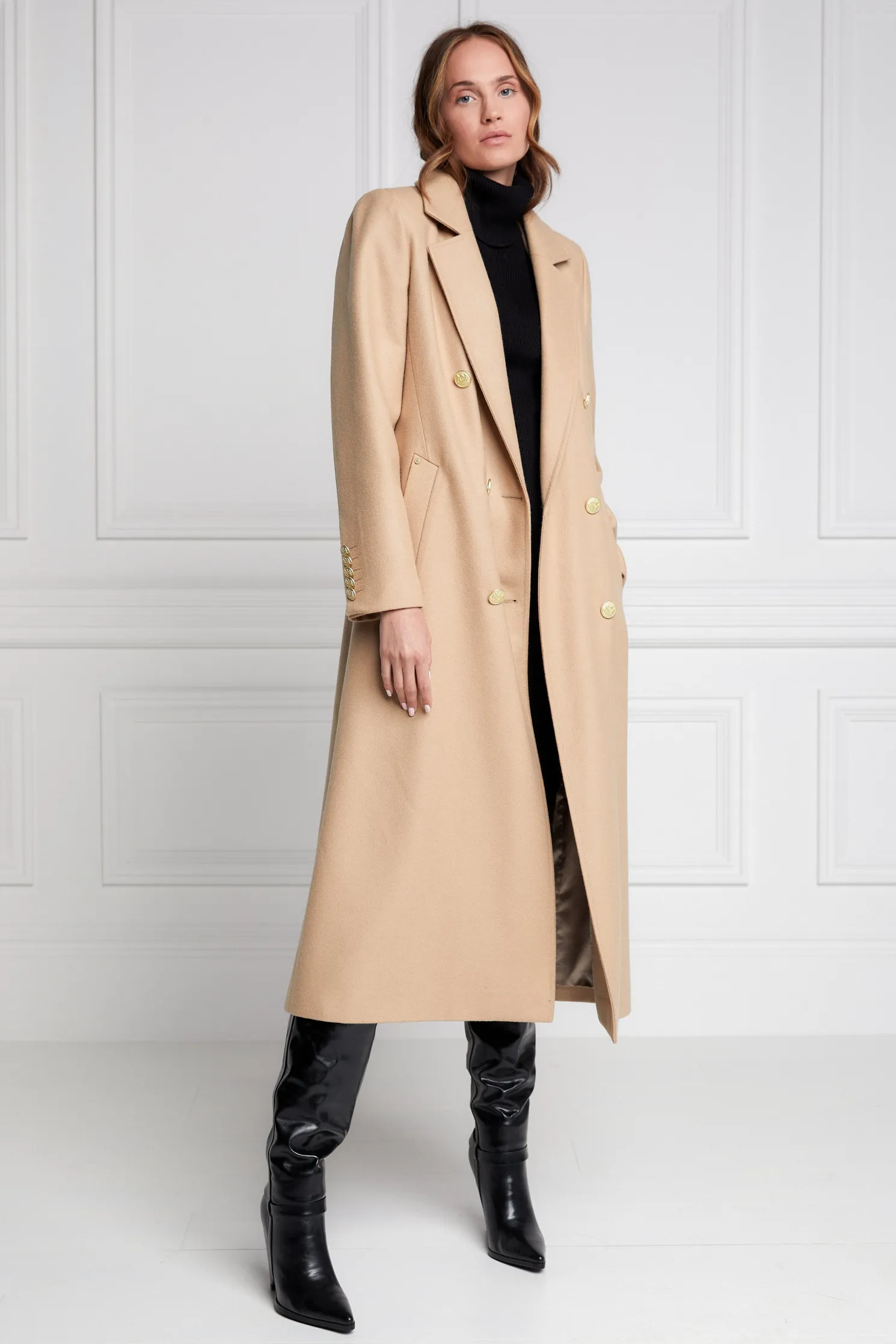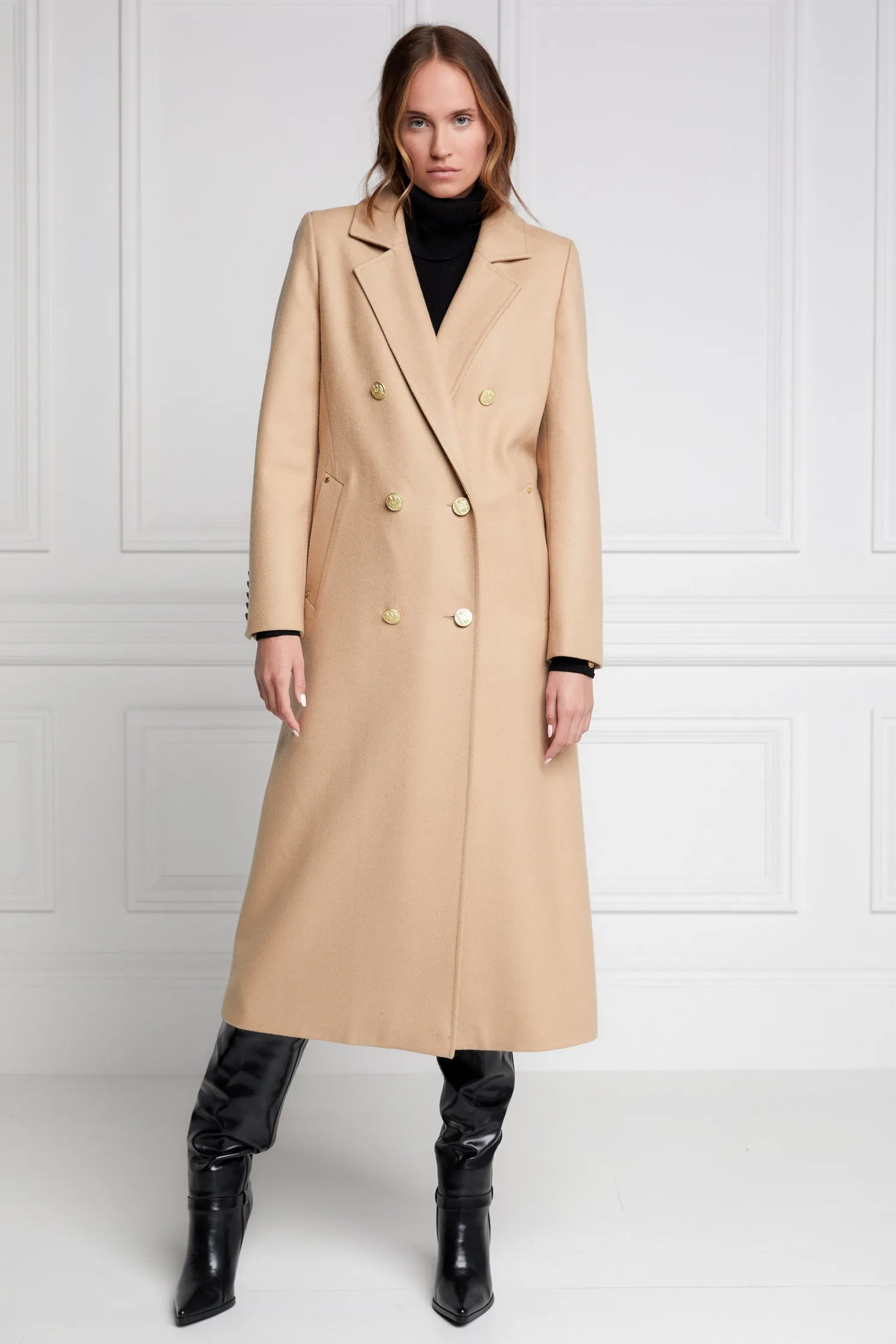 This longline sophisticated wool coat has a more-relaxed silhouette than some of our super-fitted tailoring. Perfect to layer with a classic tee or styled with our super-chunky knitwear. Made from the finest UK woven wools, this coat has been hand cut and proudly made in England.