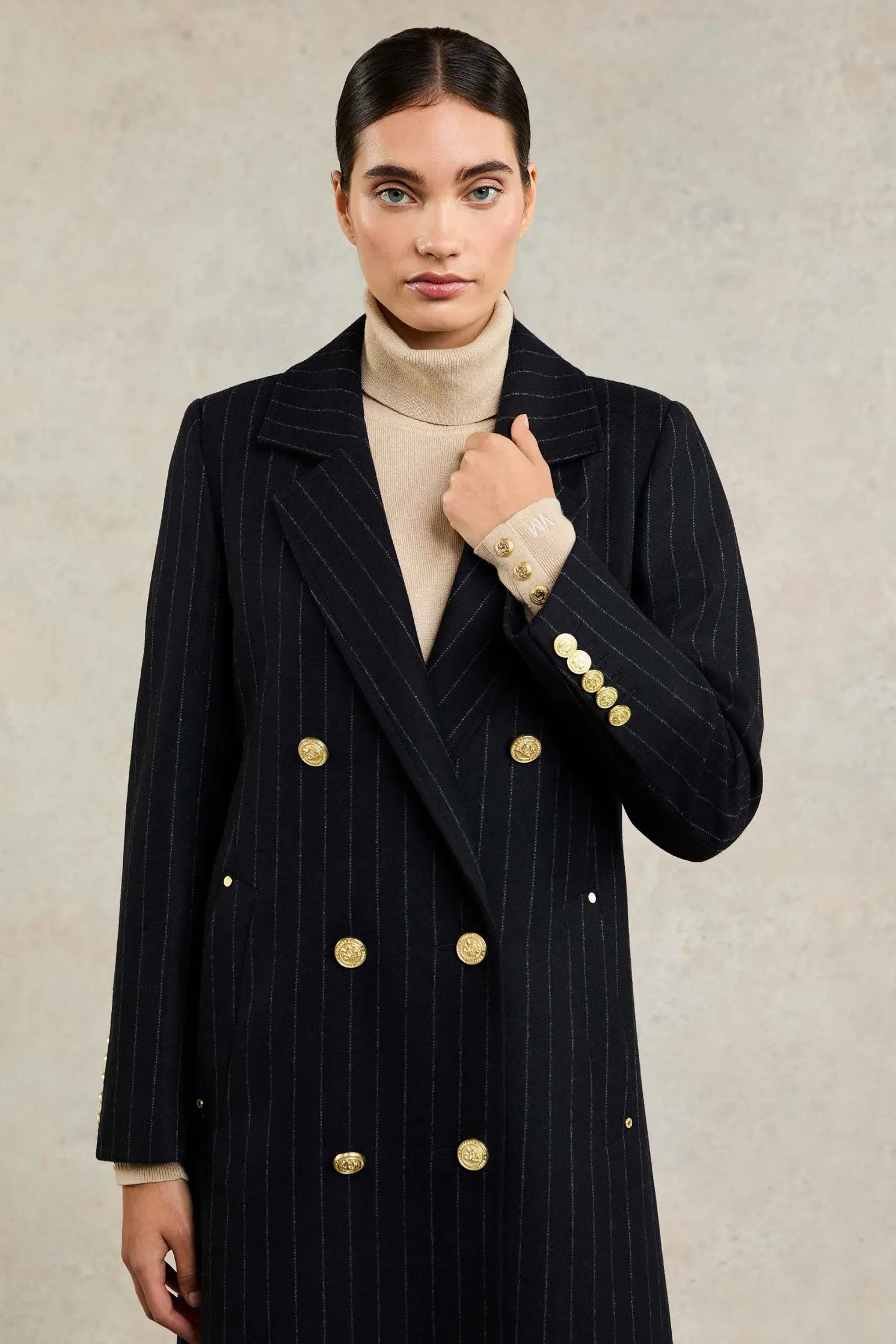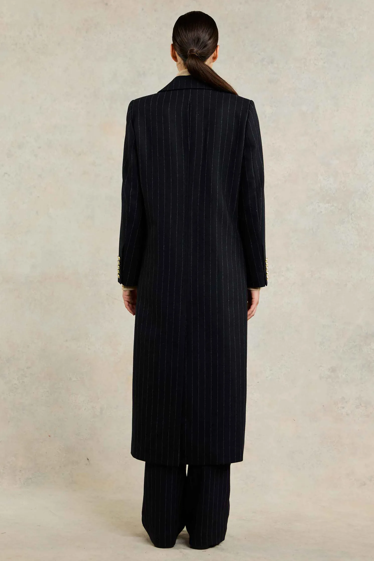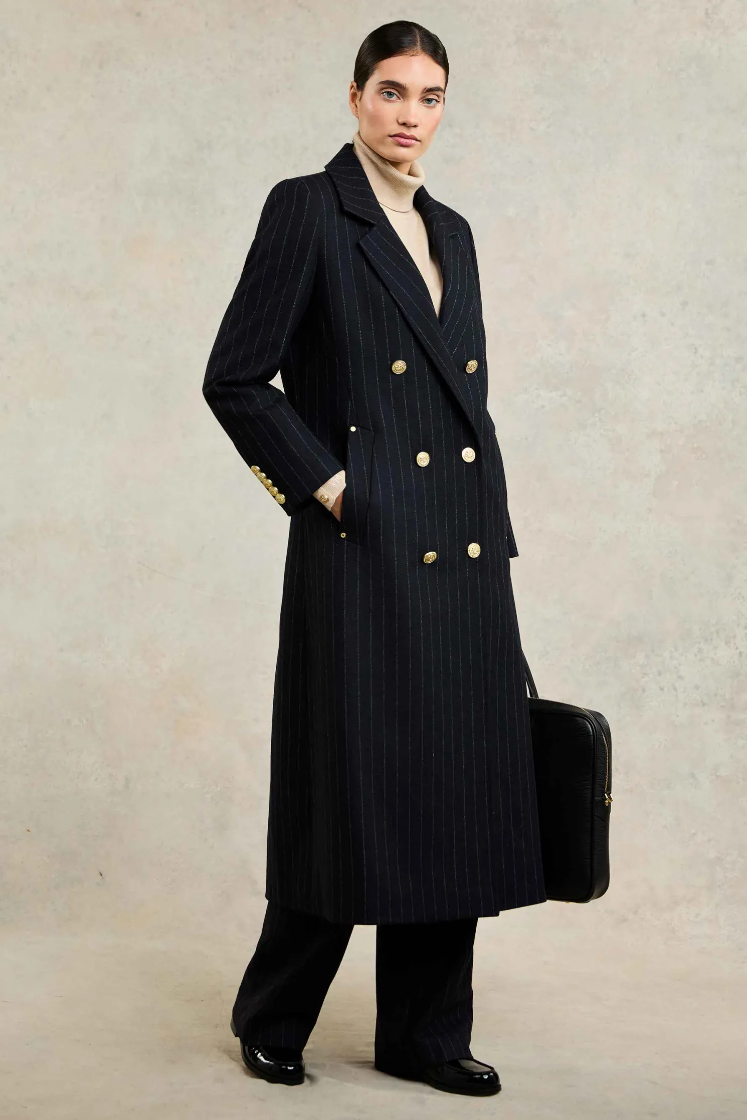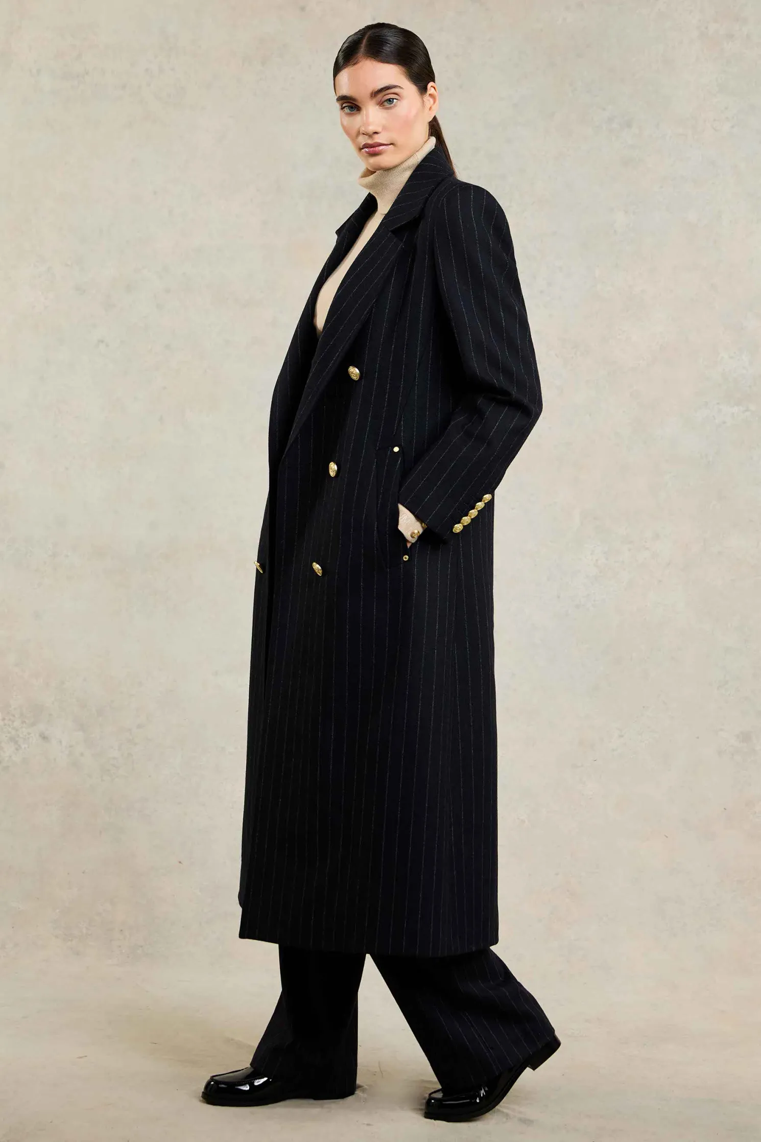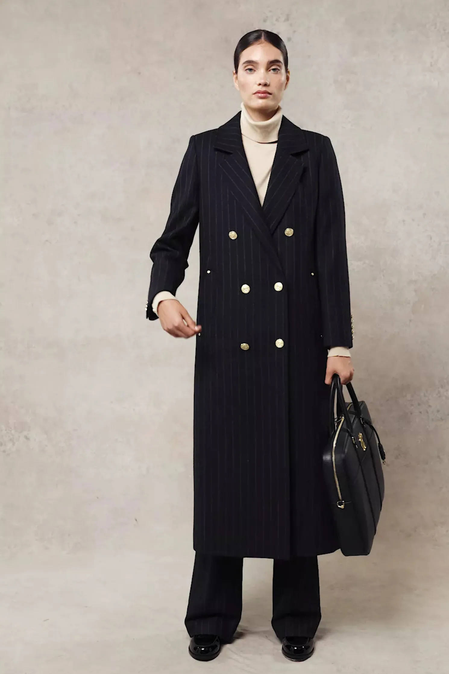 This longline sophisticated wool coat has a more-relaxed silhouette than some of our super-fitted tailoring. Perfect to layer with a classic tee or styled with our super-chunky knitwear. Made from the finest UK woven wools, this coat has been hand cut and proudly made in England.