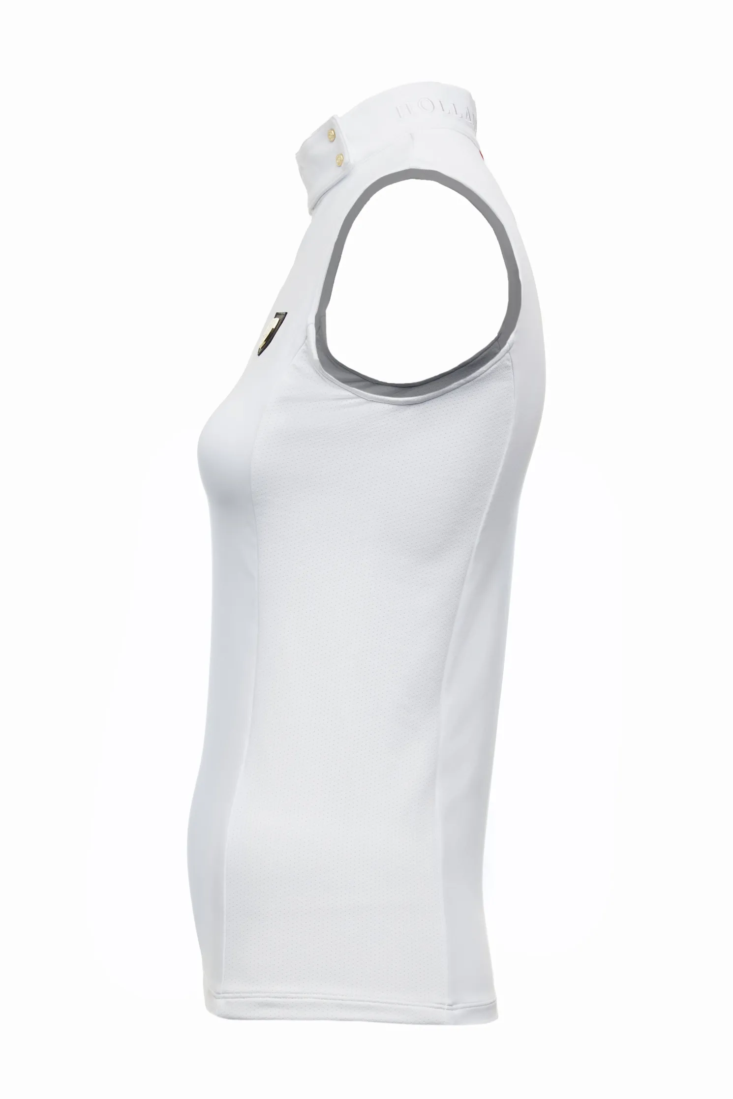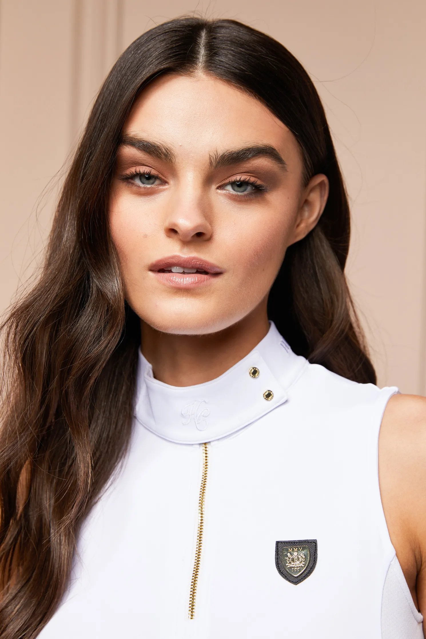 Perfect for wearing on those warmer days, this sleeveless base layer is an equestrian essential. Crafted from a comfort stretch fabric with mesh panels for breathability and ventilation, making it optimal for warmer weather. Featuring snapped collar for instant elegance and detailed with our signature gold hardware.
