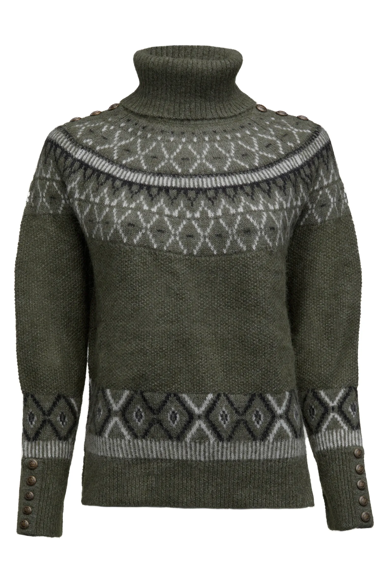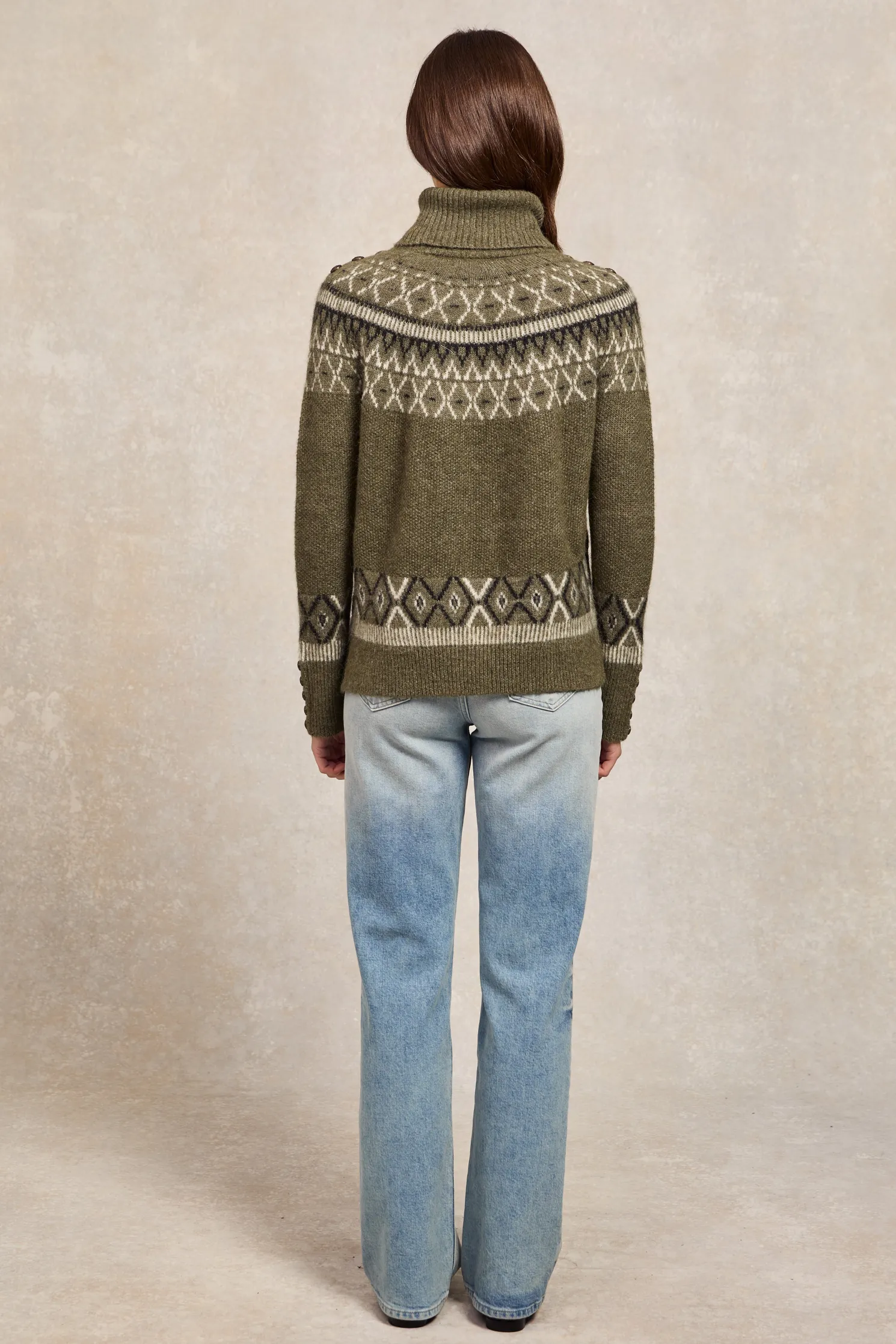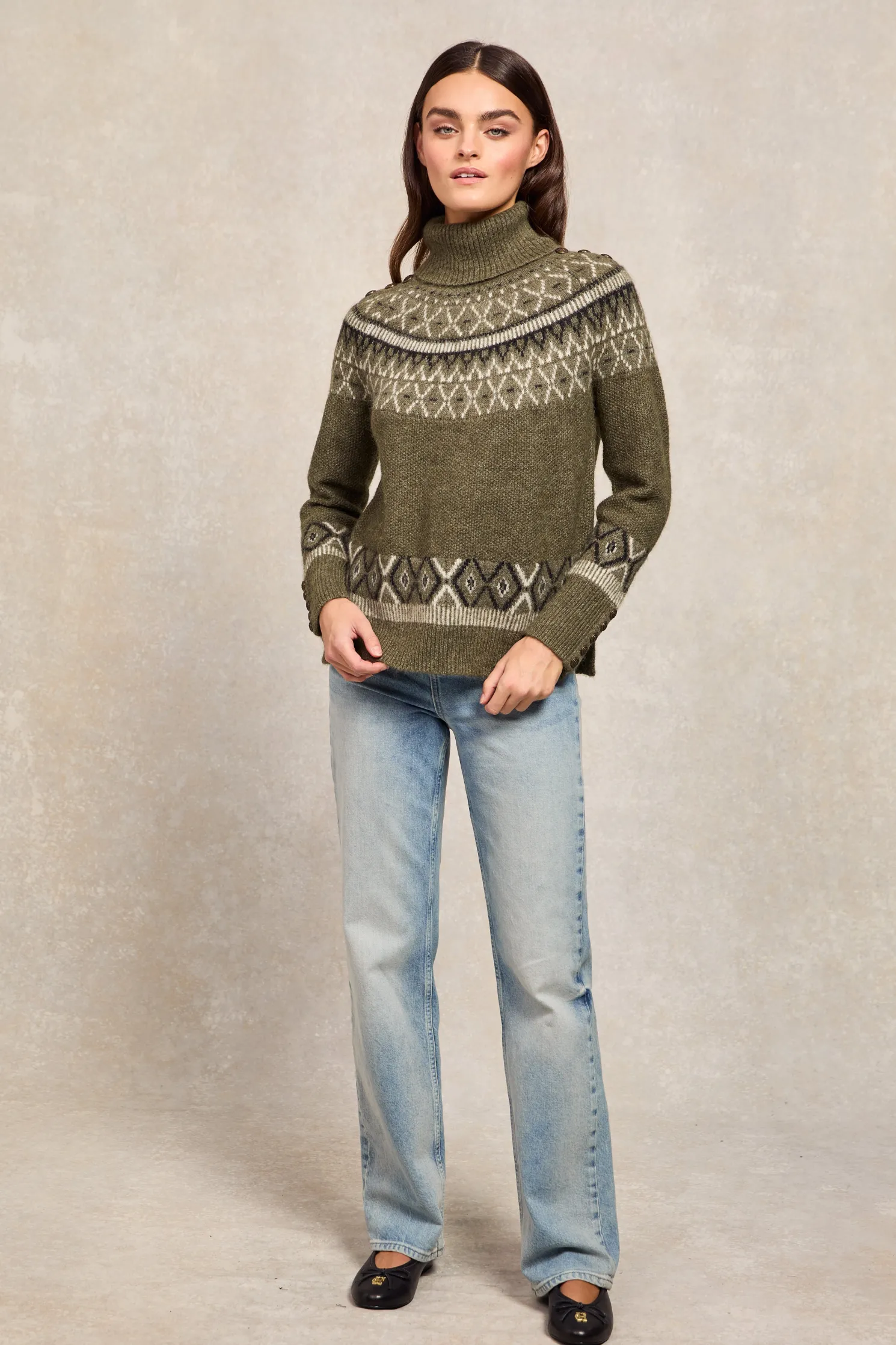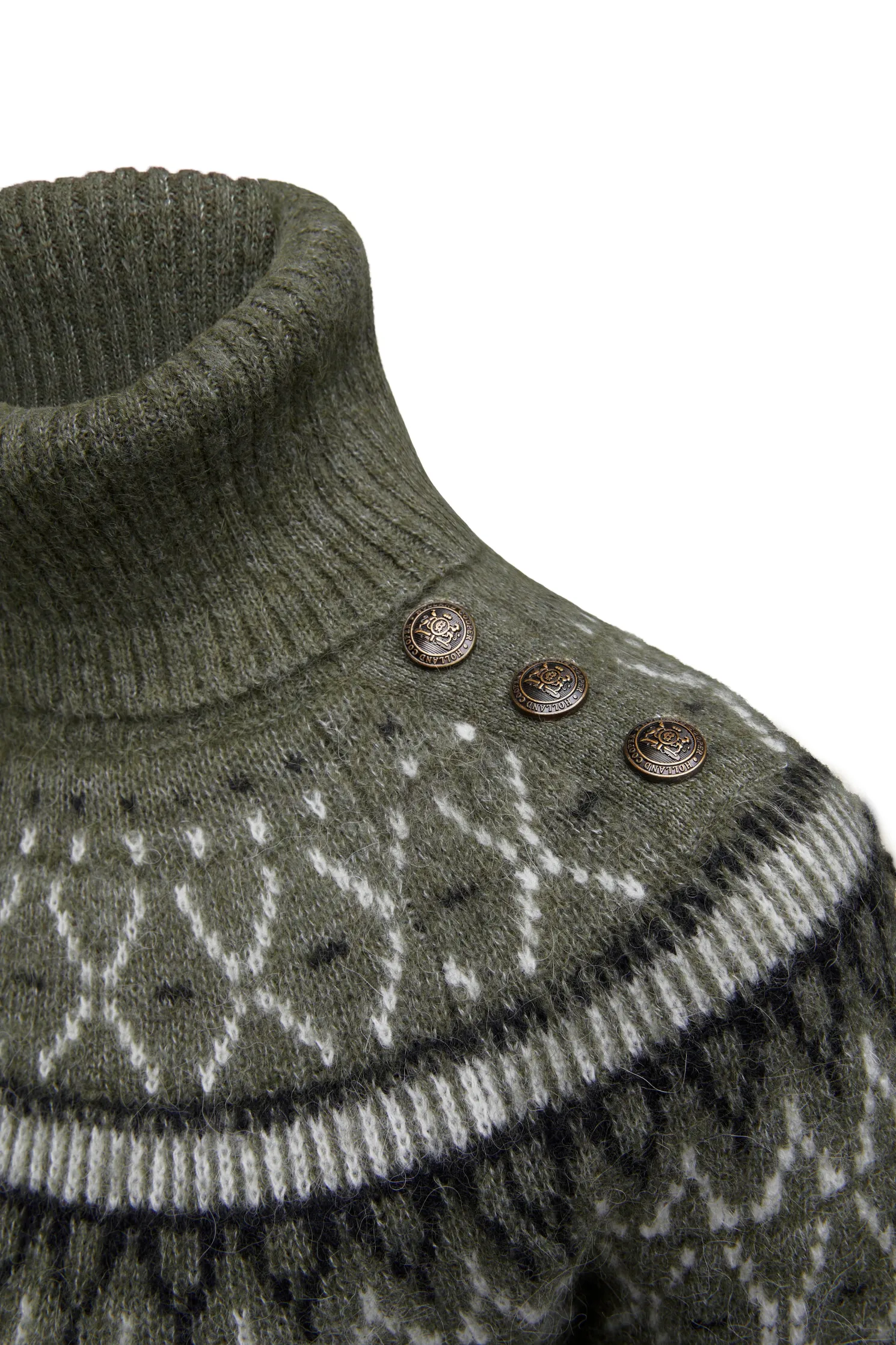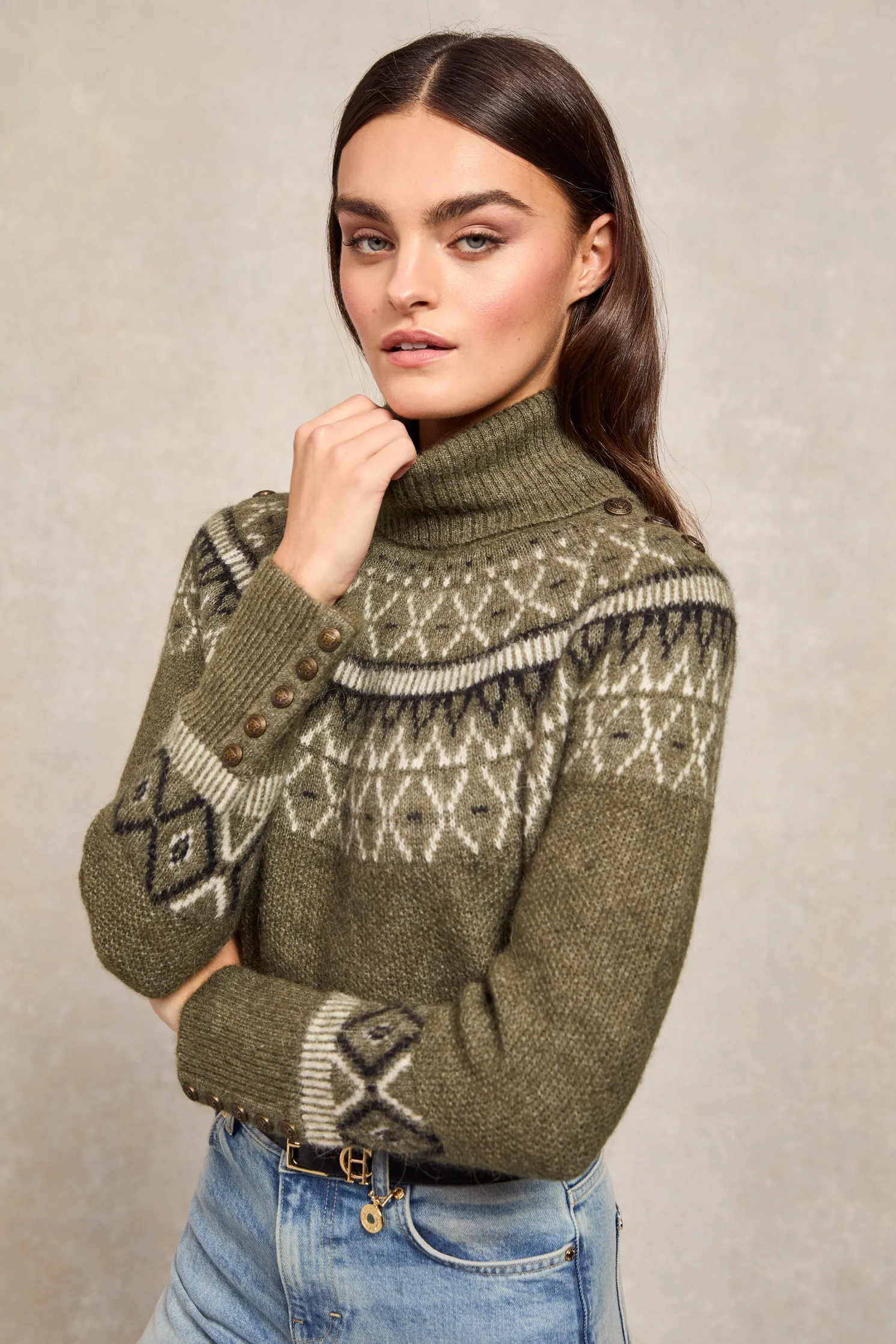 Created with a classic fairisle design that stretches across the shoulders, this knit has been designed with a relaxed fit. Made from a super soft and lightweight yarn with a cosy roll neck and ribbed cuffs. Detailed with our iconic HC branding.