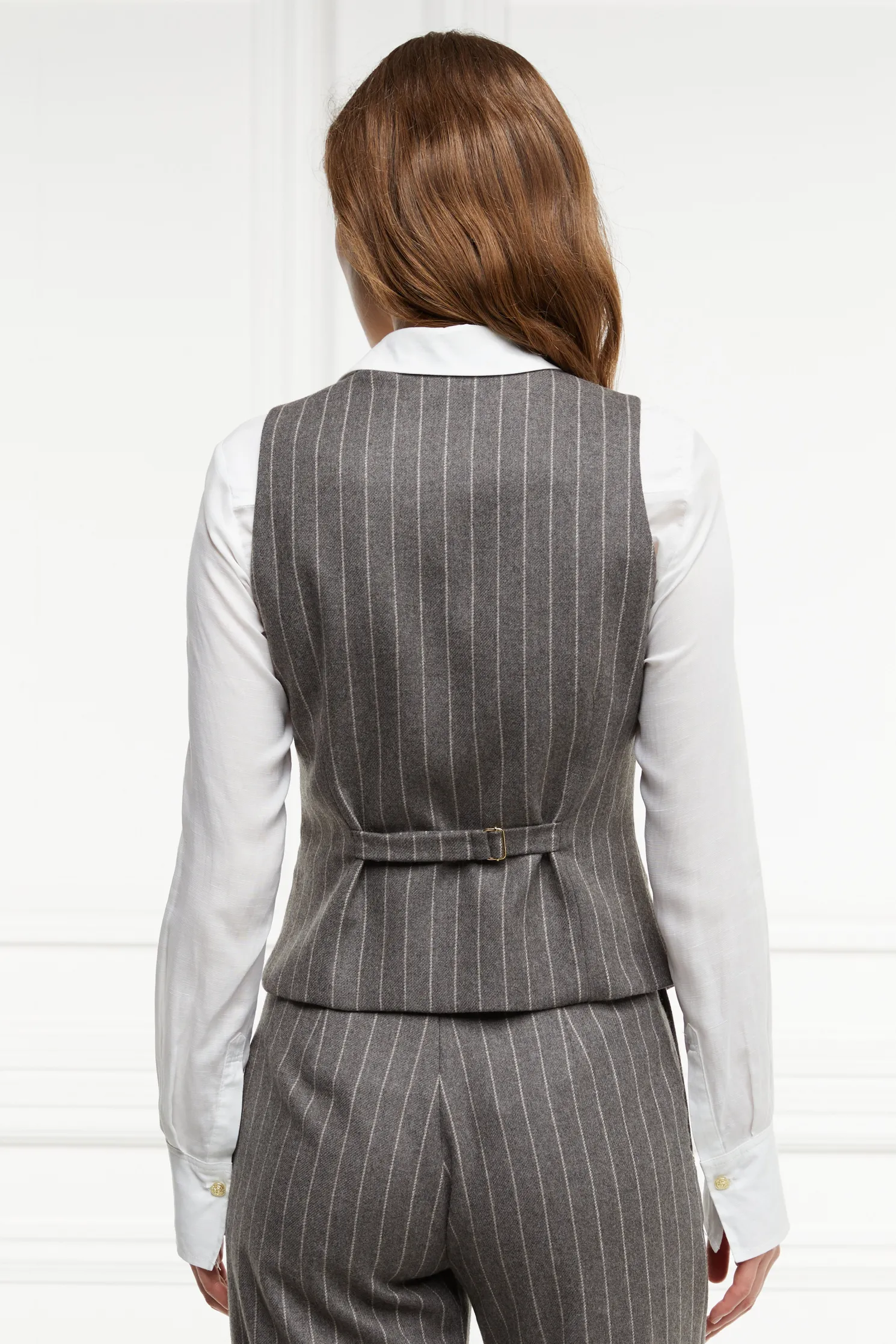 Both classic and refined, this waistcoat offers a slim tailored fit with a skimming v-neckline and elegantly shaped hem. A classic wardrobe staple with traditional suiting details, neat welted pockets, satin lining and a darted front, the back adjuster allows for a personalised fit. Subtly detailed with HC horn buttons. This piece looks great simply paired with matching trousers, as a layering piece, or as part of a 3 piece suit.