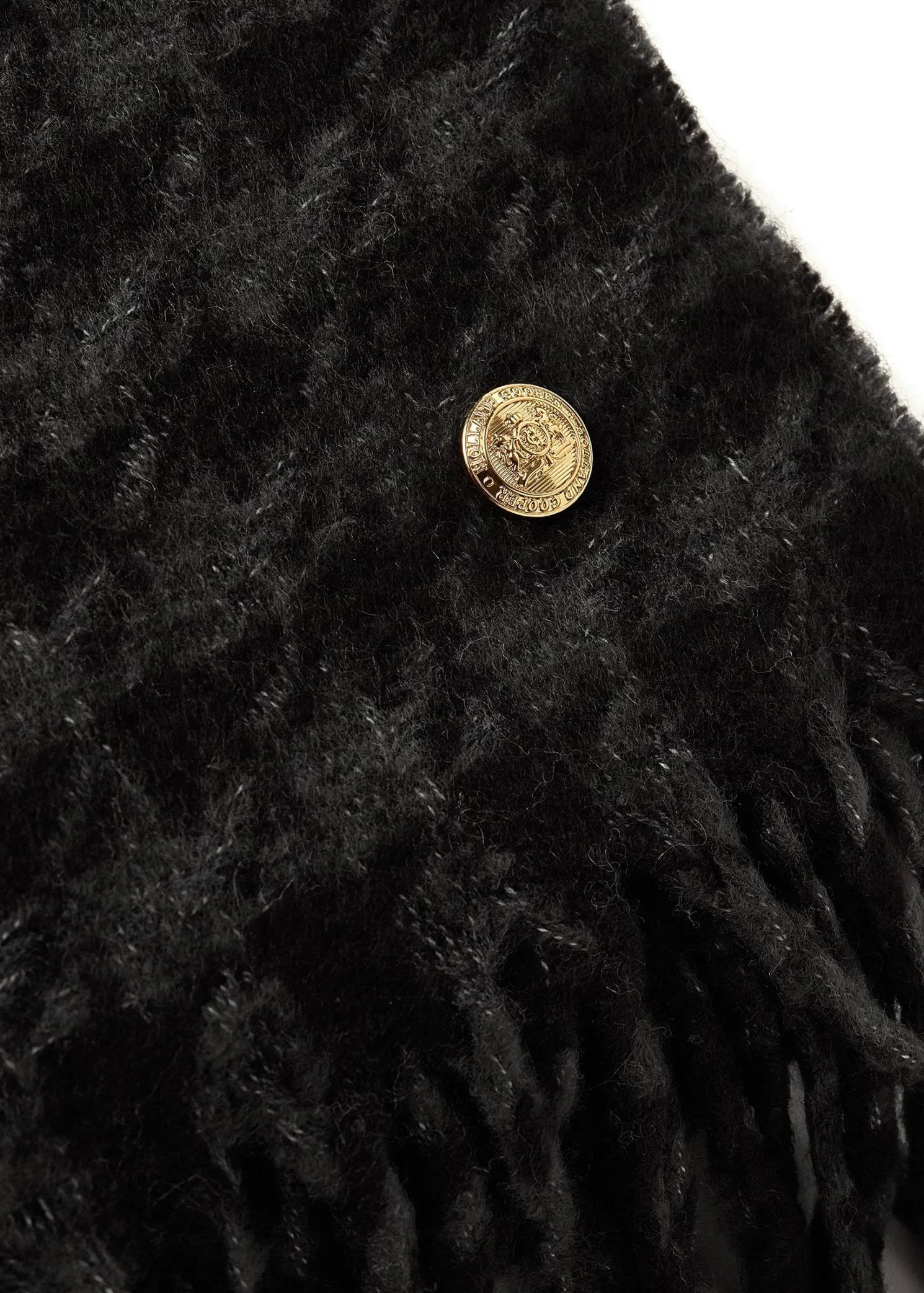 An essential accessory for colder climes, the wool blend Houndstooth Scarf fuses function with understated style. The brushed silhouette is complete with fringe trims, adding an elegant edge to every cold weather ensemble.