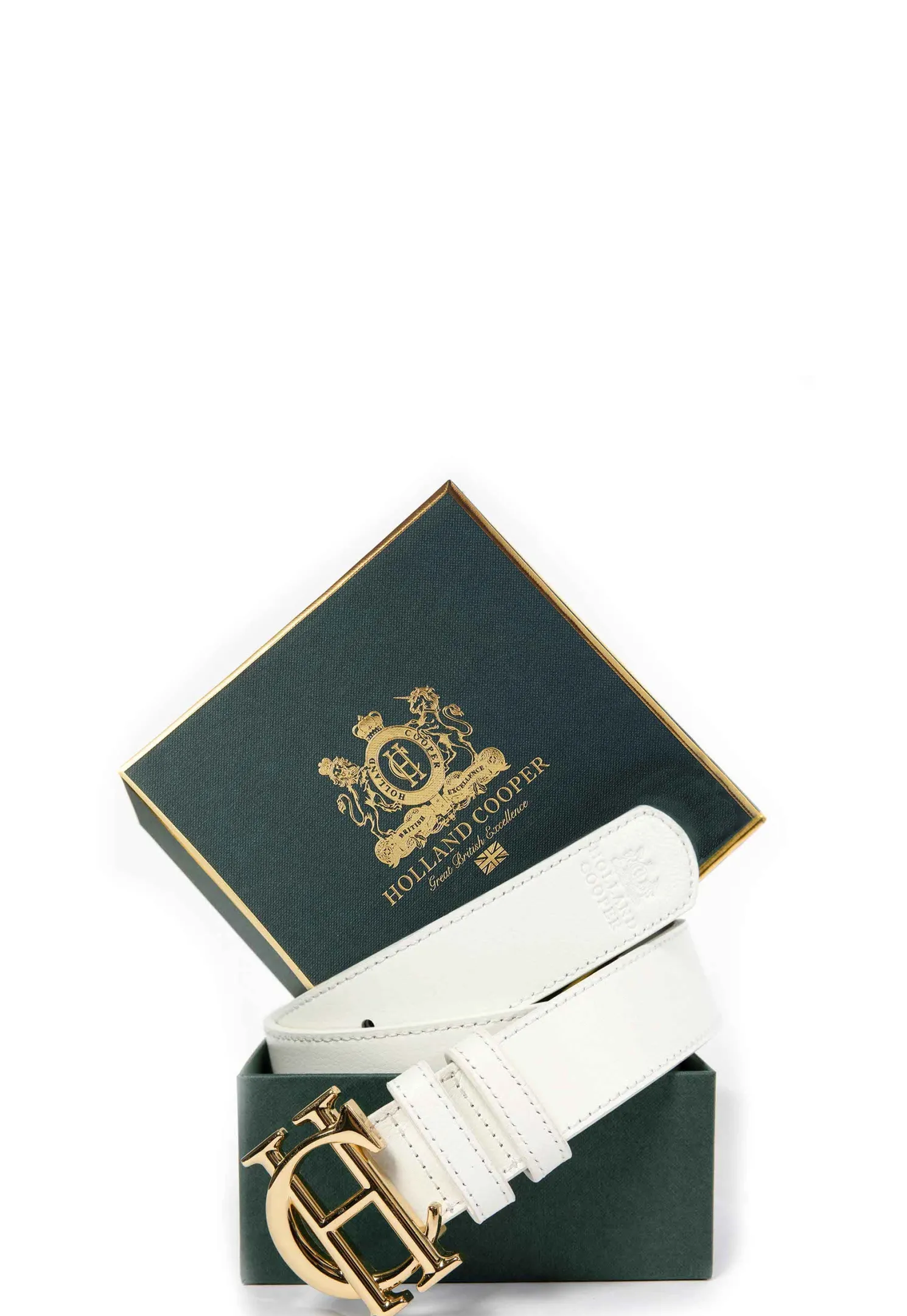 Make a statement with our HC Classic Belt, the staple complimentary piece to any outfit. Created using genuine leather and a gold plated Holland Cooper buckle, this prestigious British designed accessory is a necessary addition to your every day style. Pair with our Jodhpur Jeans for a casual, but chic look or a tweed mini skirt for a touch of elegance. Visit Size & Fit to see specific belt sizes.