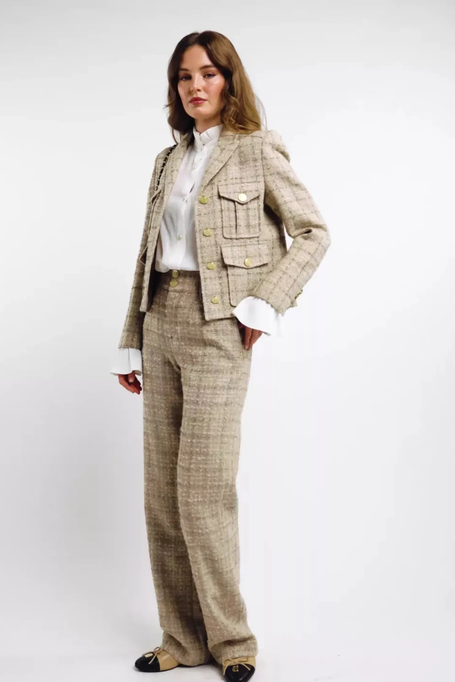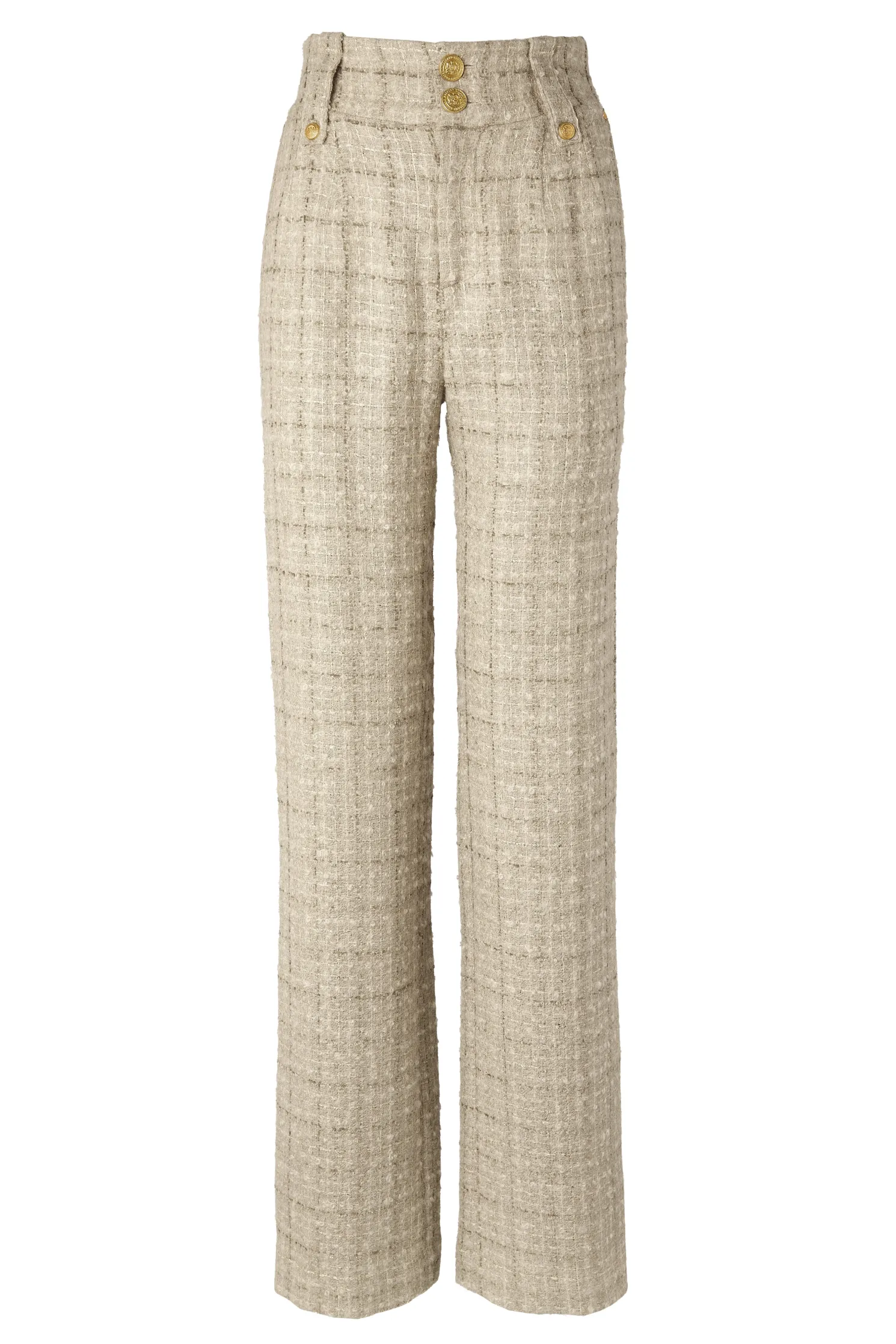 High Waisted Straight Trouser (Camel Sparkle Tweed)