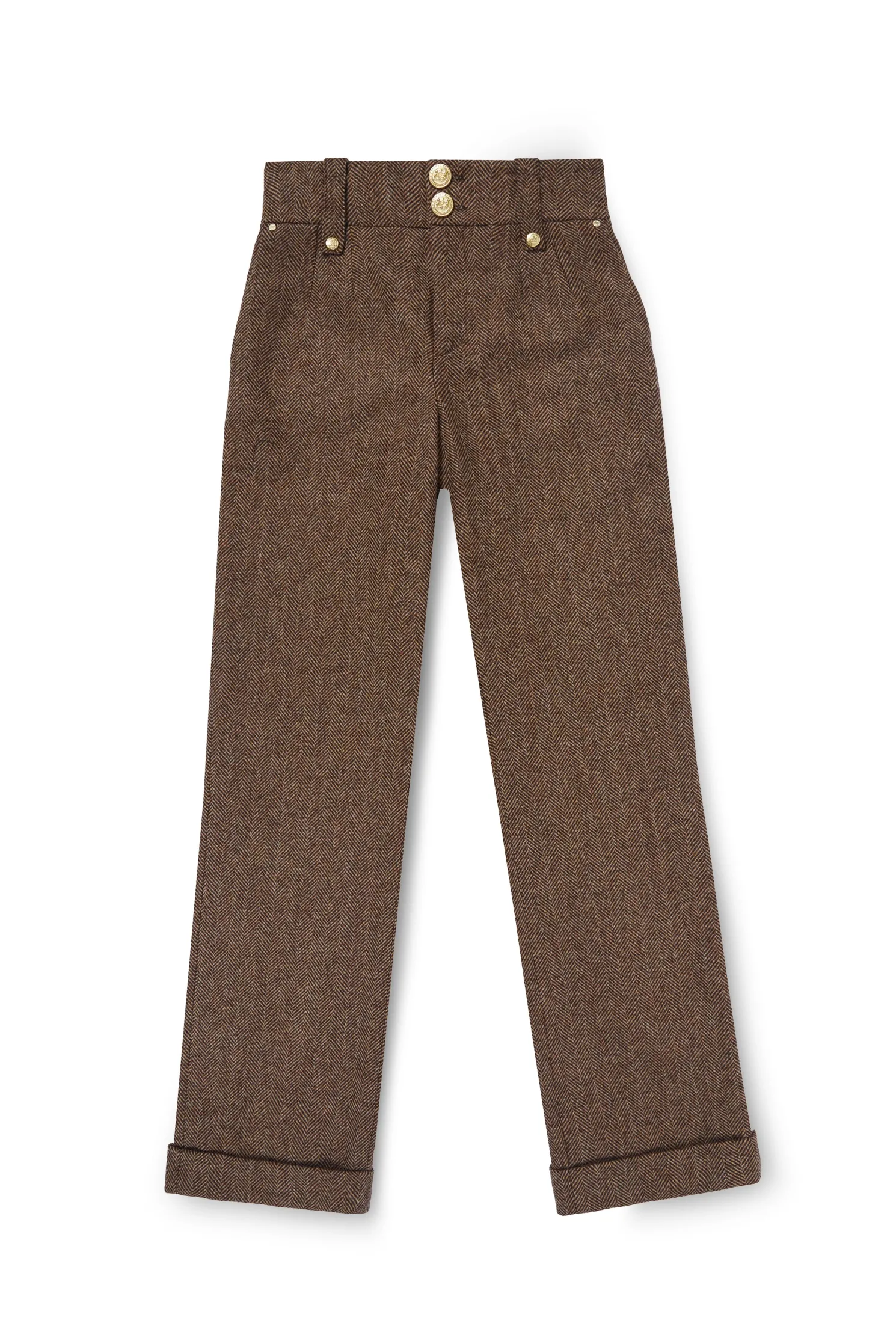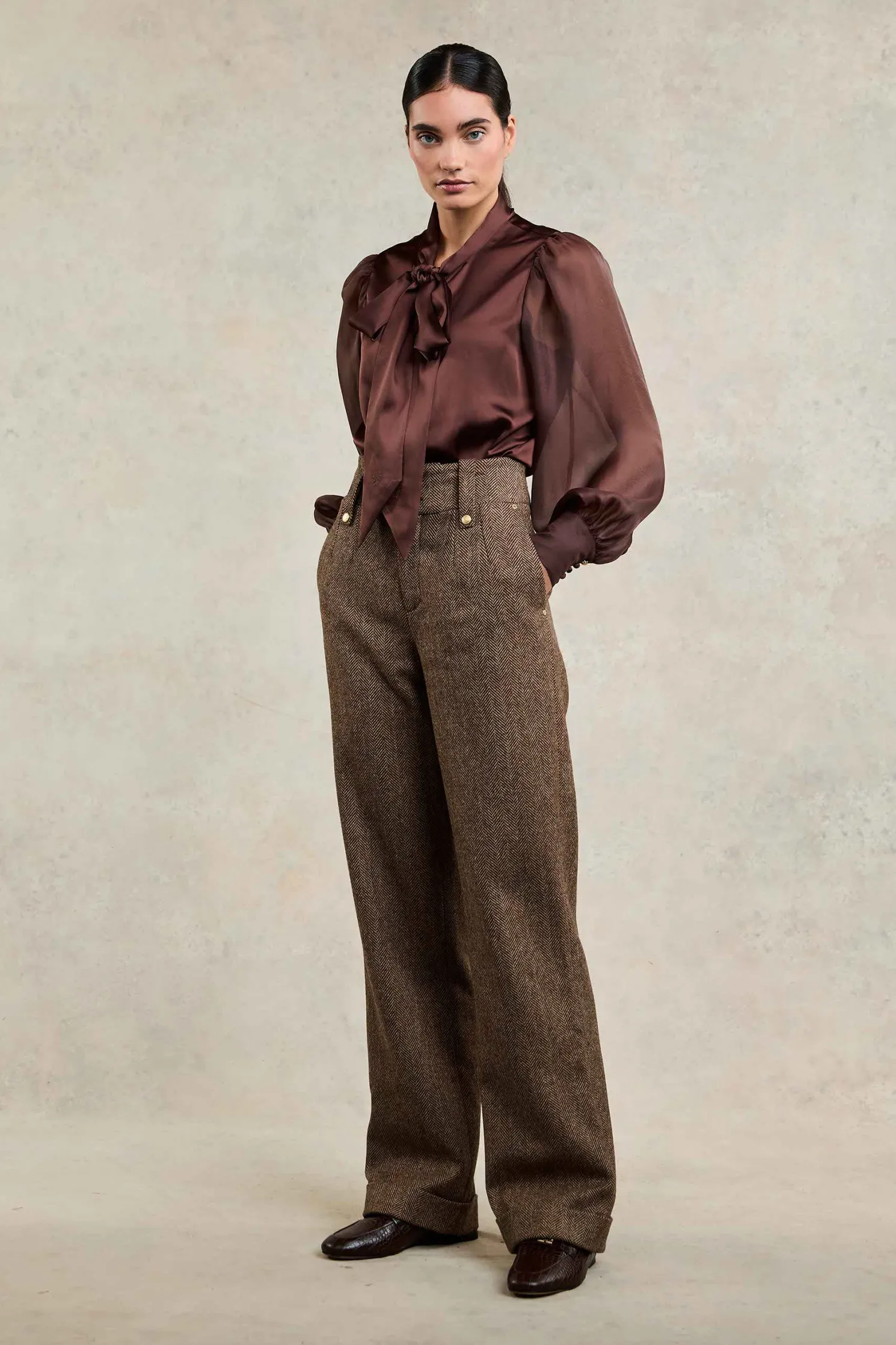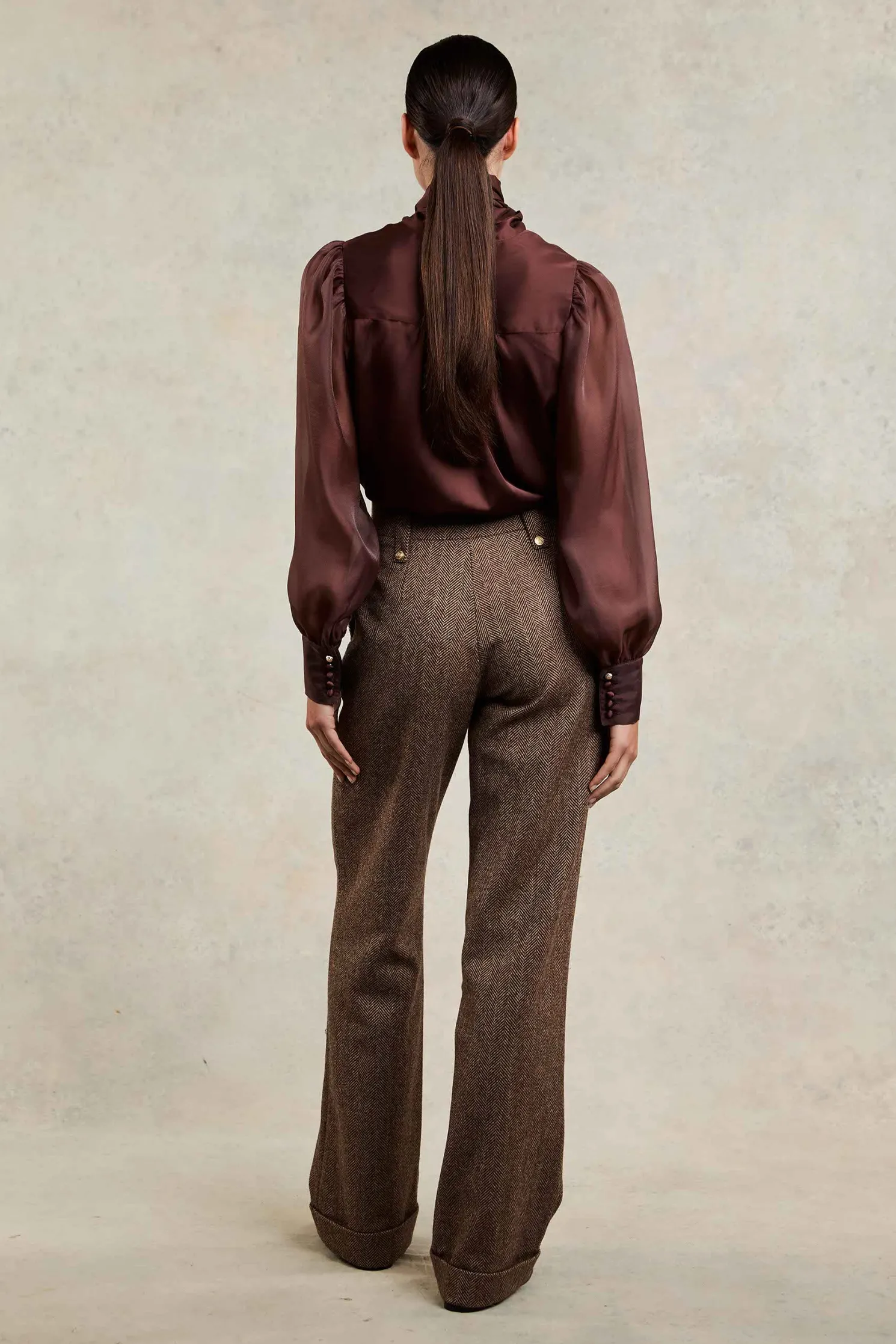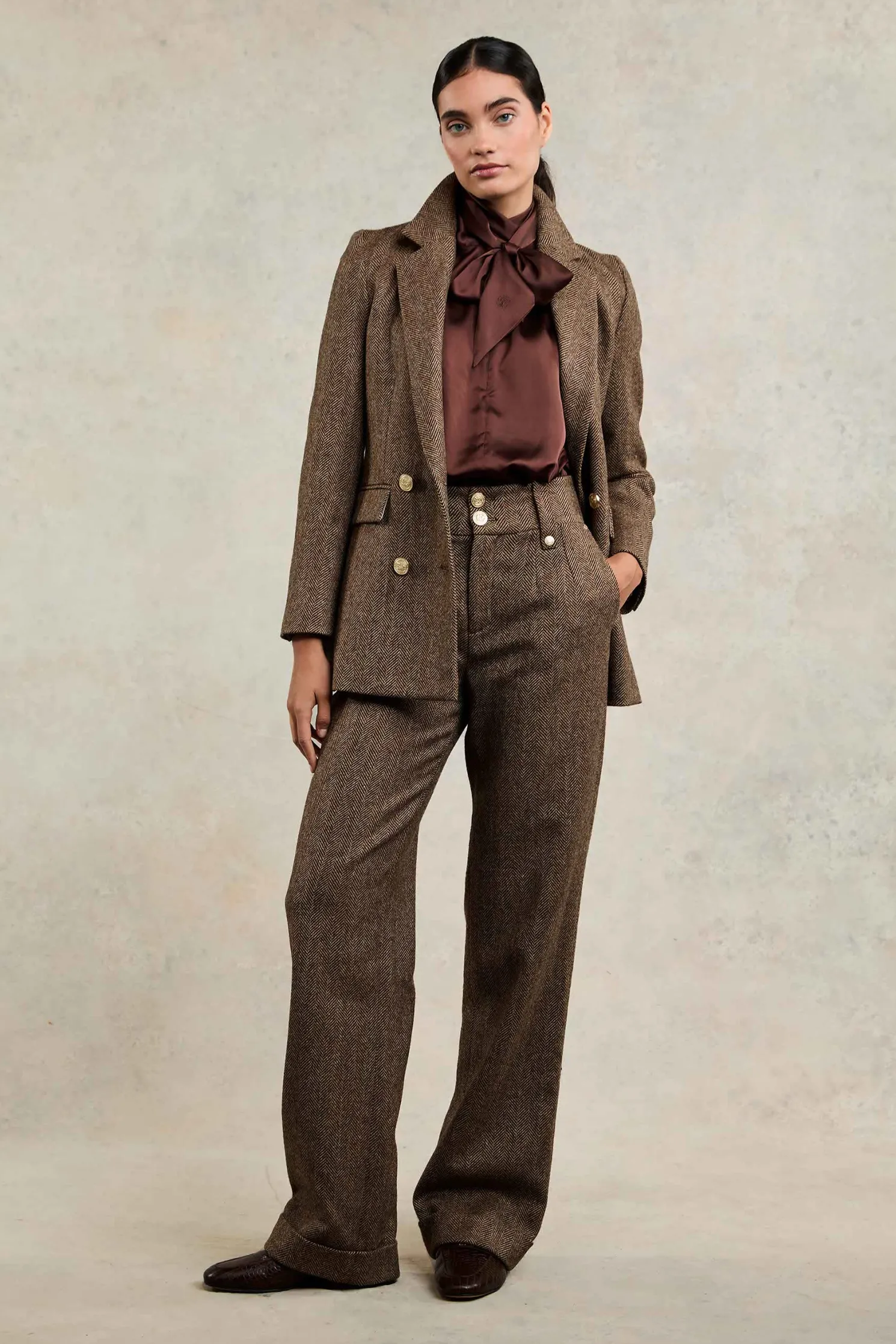 Simple and refined, these straight-leg trousers are the perfect balance of smart and casual that effortlessly take you from day to night. Made from a luxurious wool blend that’s fully lined, these trousers sit high on the waist with a wide waistband to create a flattering silhouette that suits all body shapes. Featuring two large side pockets and adorned with our iconic gold hardware for an added touch of luxury. These trousers have been hand cut and made in England using wool woven in the UK.
