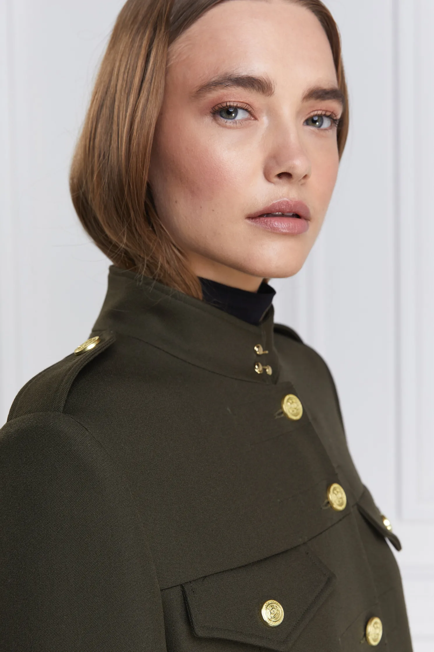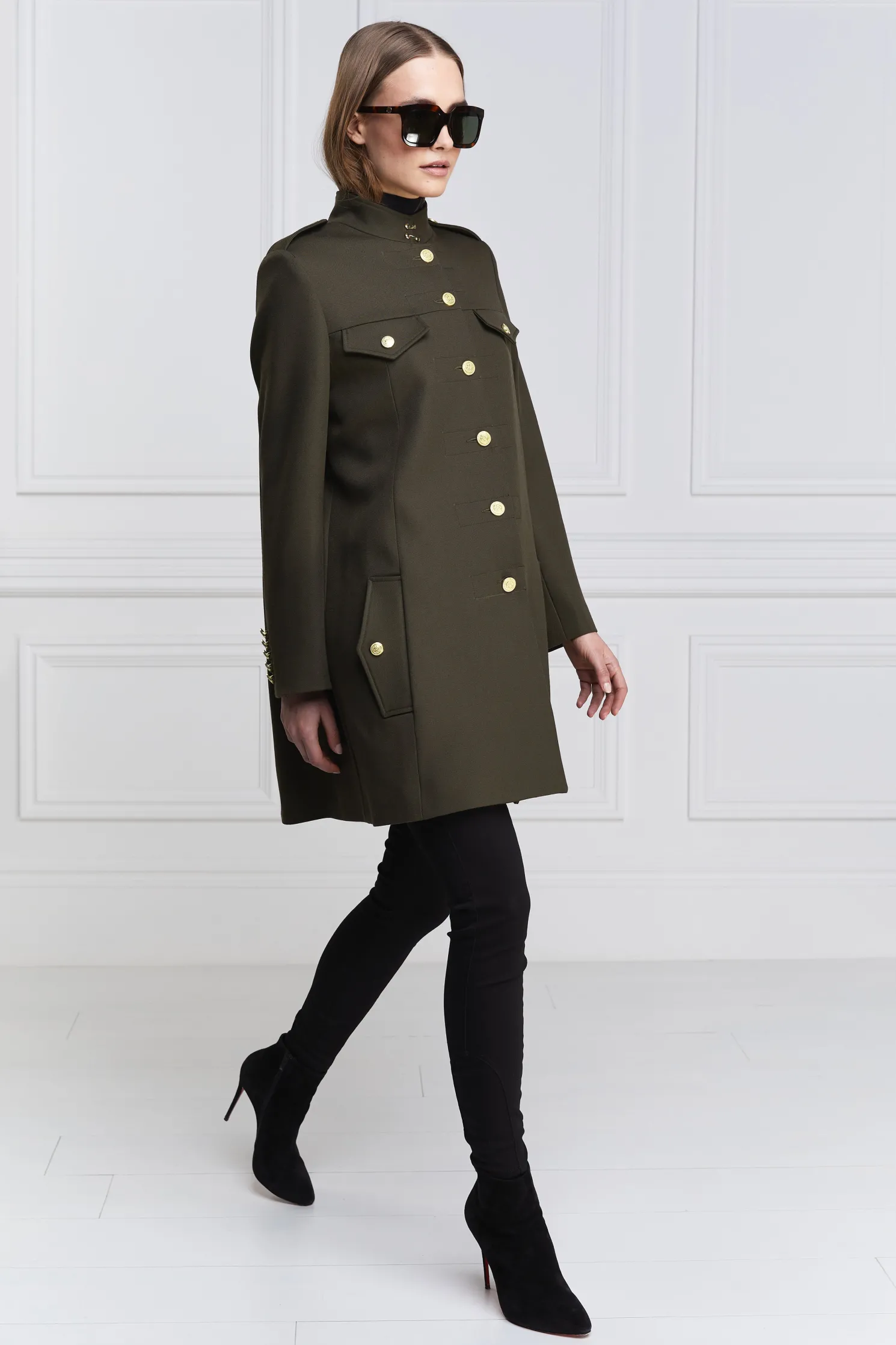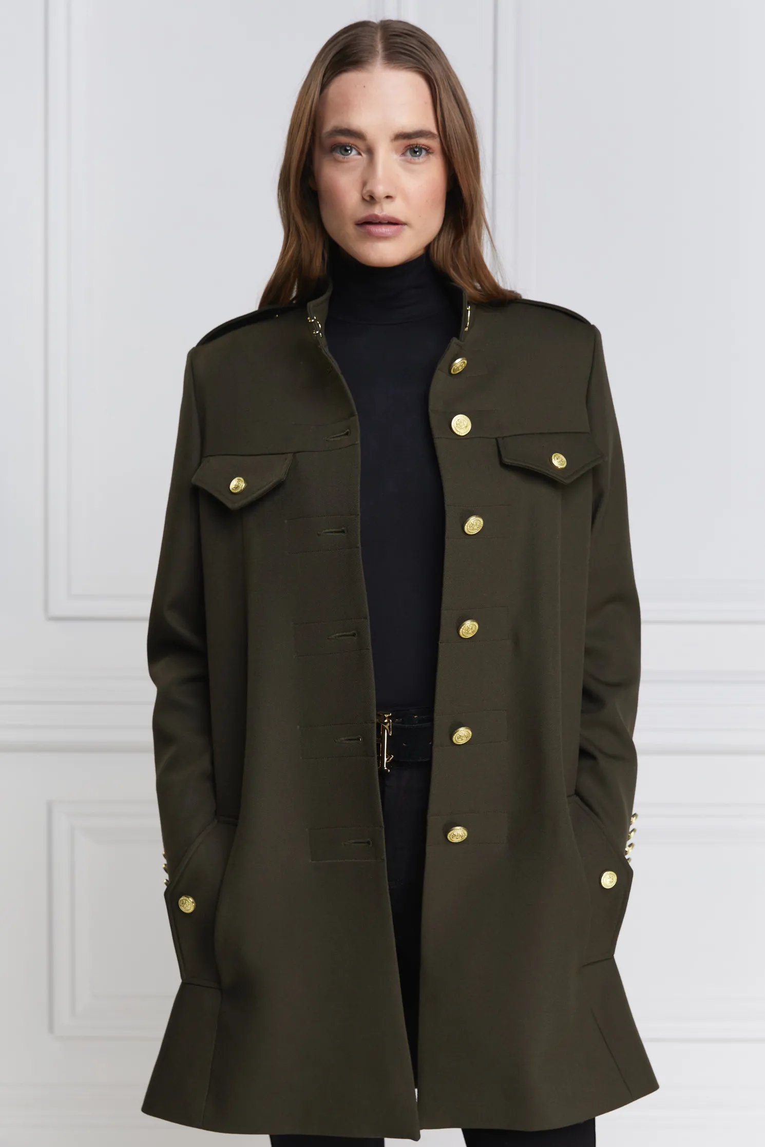 A hybrid between a cape and a jacket, the Highbury Cape has been entirely handmade in the UK. Designed to fit like a cape with an easy fit and elegant drape, the tailored sleeves create a sophisticated silhouette. With a wide inverted box pleat with side-entry pockets, the piece has been detailed with a high neck hook and eye closure.