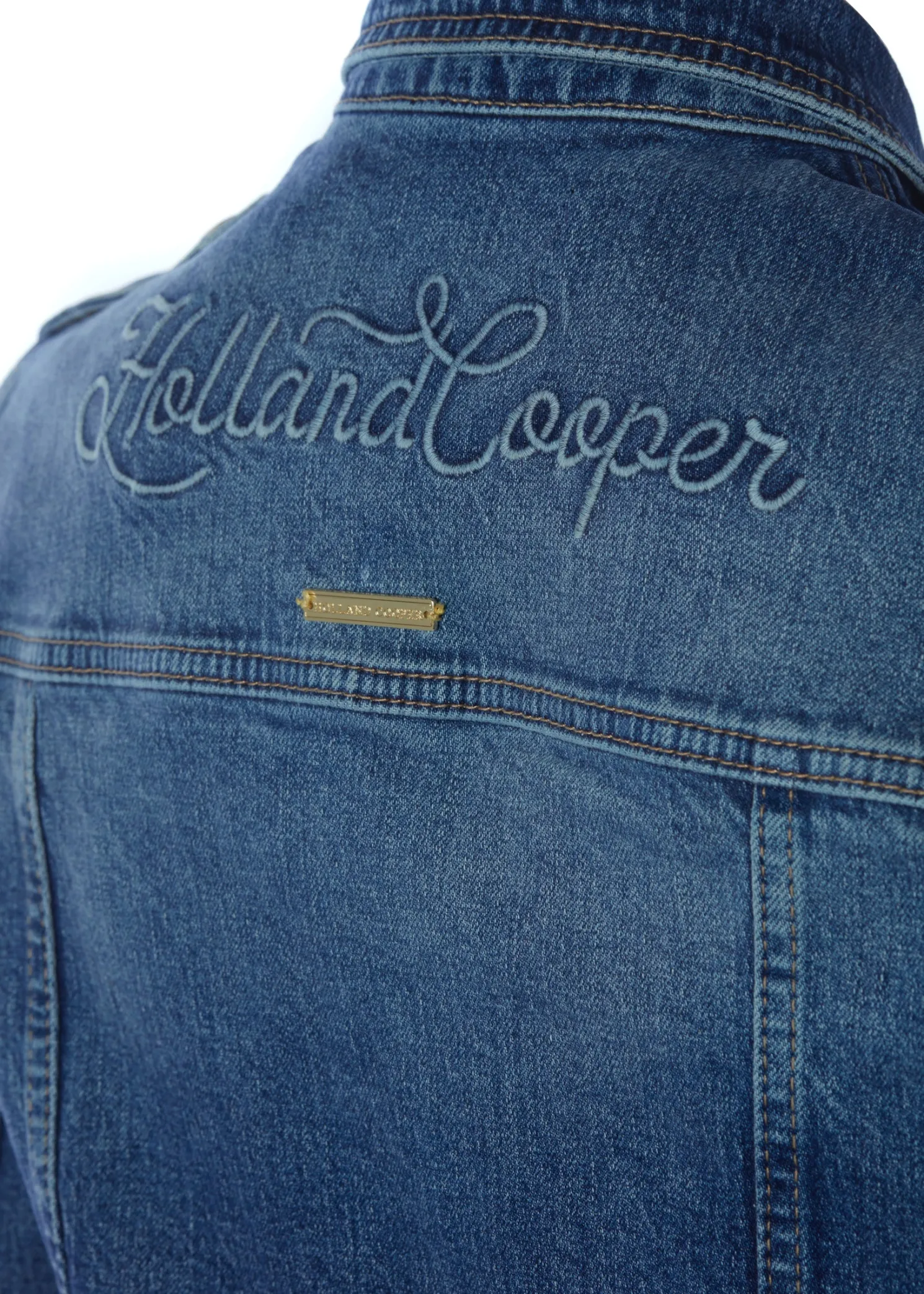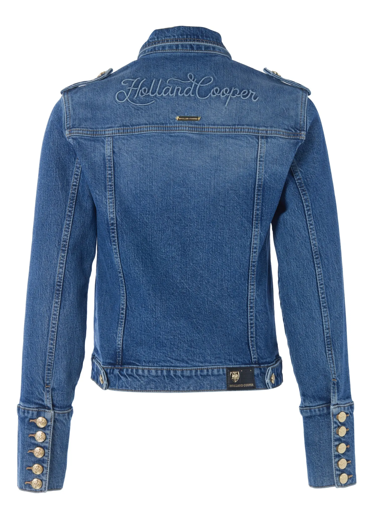 Designed with a classic 80’s style, this jacket has been created from a comfortable stretch denim. Perfect for layering, this jacket has been detailed with a flap chest pocket, deep cuffs and our iconic hardware. Finished with our new leather jacron to the back.