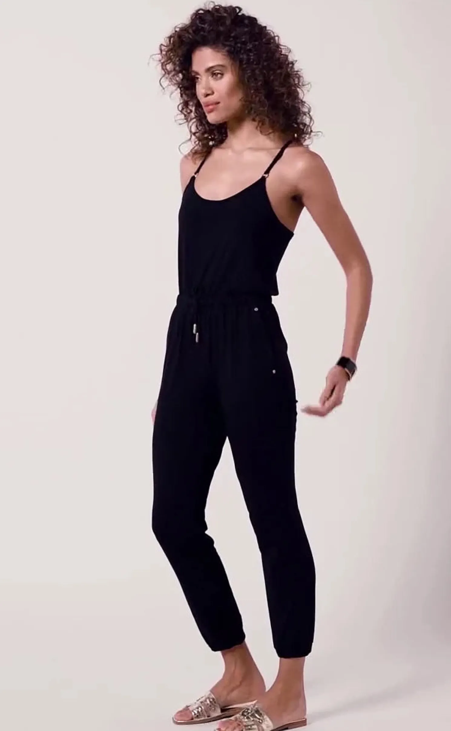Designed with a relaxed fit with a drawstring waist to cinch you in, this piece has been curated from a super soft jersey fabric. With a racerback style, adjustable spaghetti straps & cuffed ankles, this jumpsuit is both stylish and comfortable. Detailed with our iconic hardware.