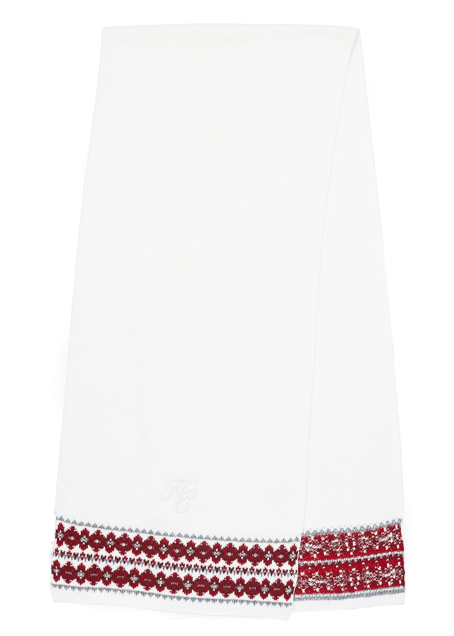Introducing the Jennifer Fairisle Scarf, designed to perfectly complement our Jennifer Knit. Available in three warm autumnal colorways, this scarf showcases a classic Fair Isle pattern adorned with sparkling crystal studs. The premium high build embroidery adds a touch of luxury and sophistication. Combining timeless design with elegant detailing, the Jennifer Fairisle Scarf is a stylish and versatile addition to your winter wardrobe.