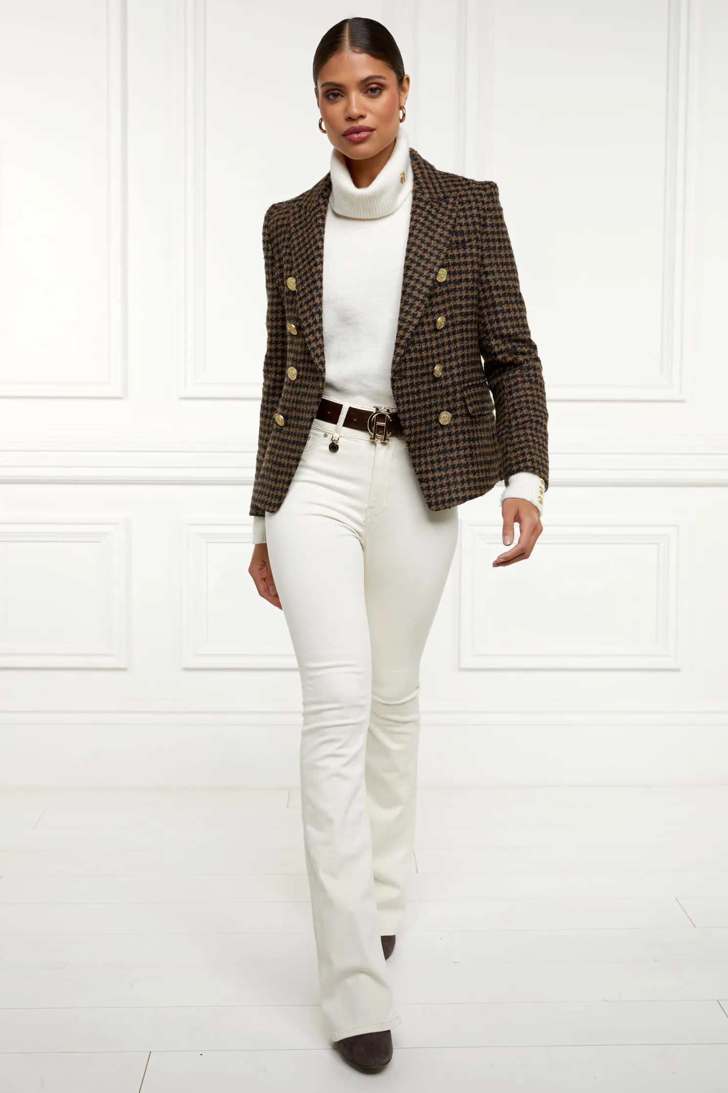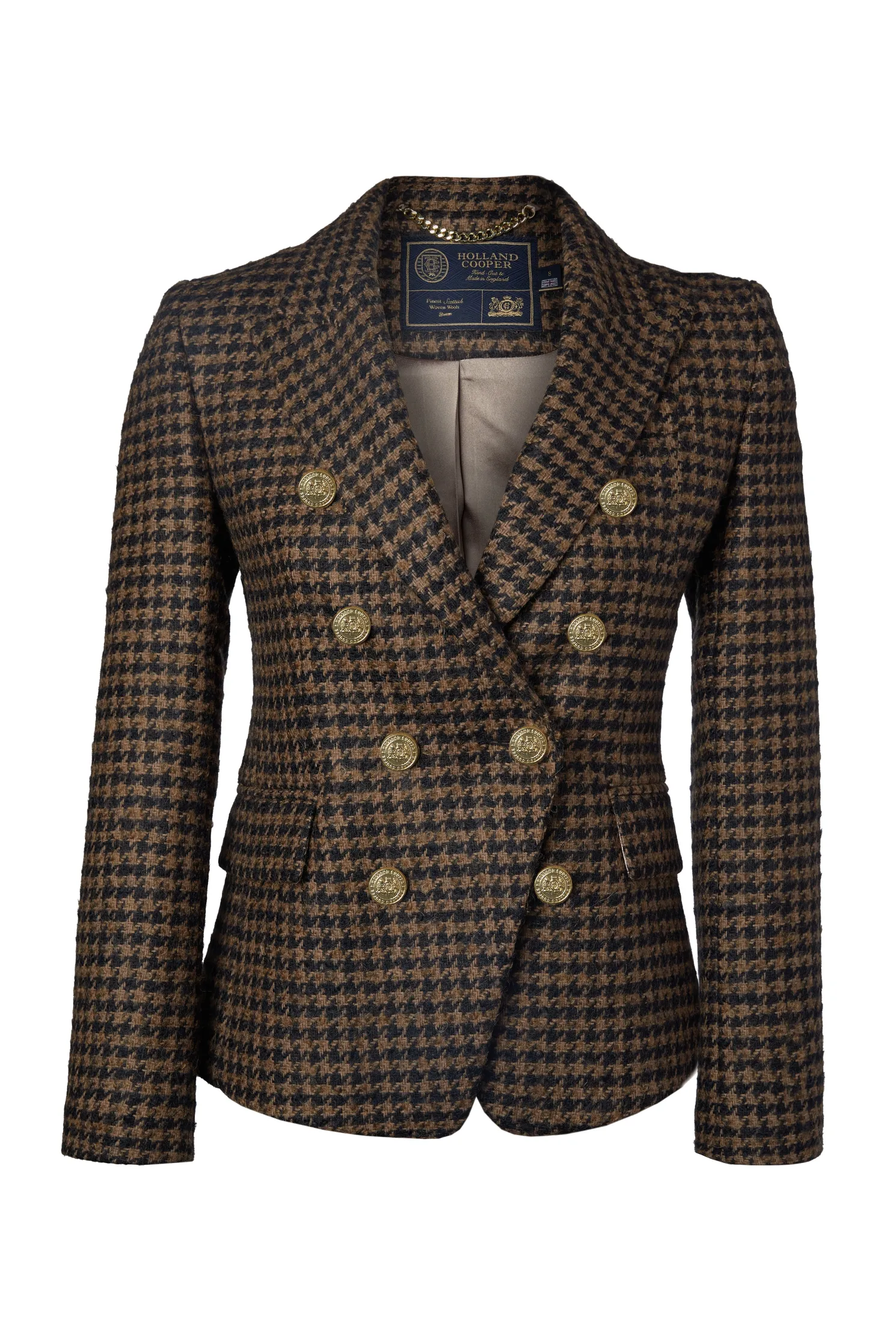 This chic transeasonal essential is meticulously designed to create a sharp, tailored silhouette, whether worn open or closed. Crafted entirely in England, it features luxurious British-woven wool, ensuring the highest quality and heritage craftsmanship. Fully lined with a luxury stretch lining for unparalleled comfort, this blazer is adorned with our signature HC gold buttons on the front and cuffs, adding a touch of elegance and distinction.