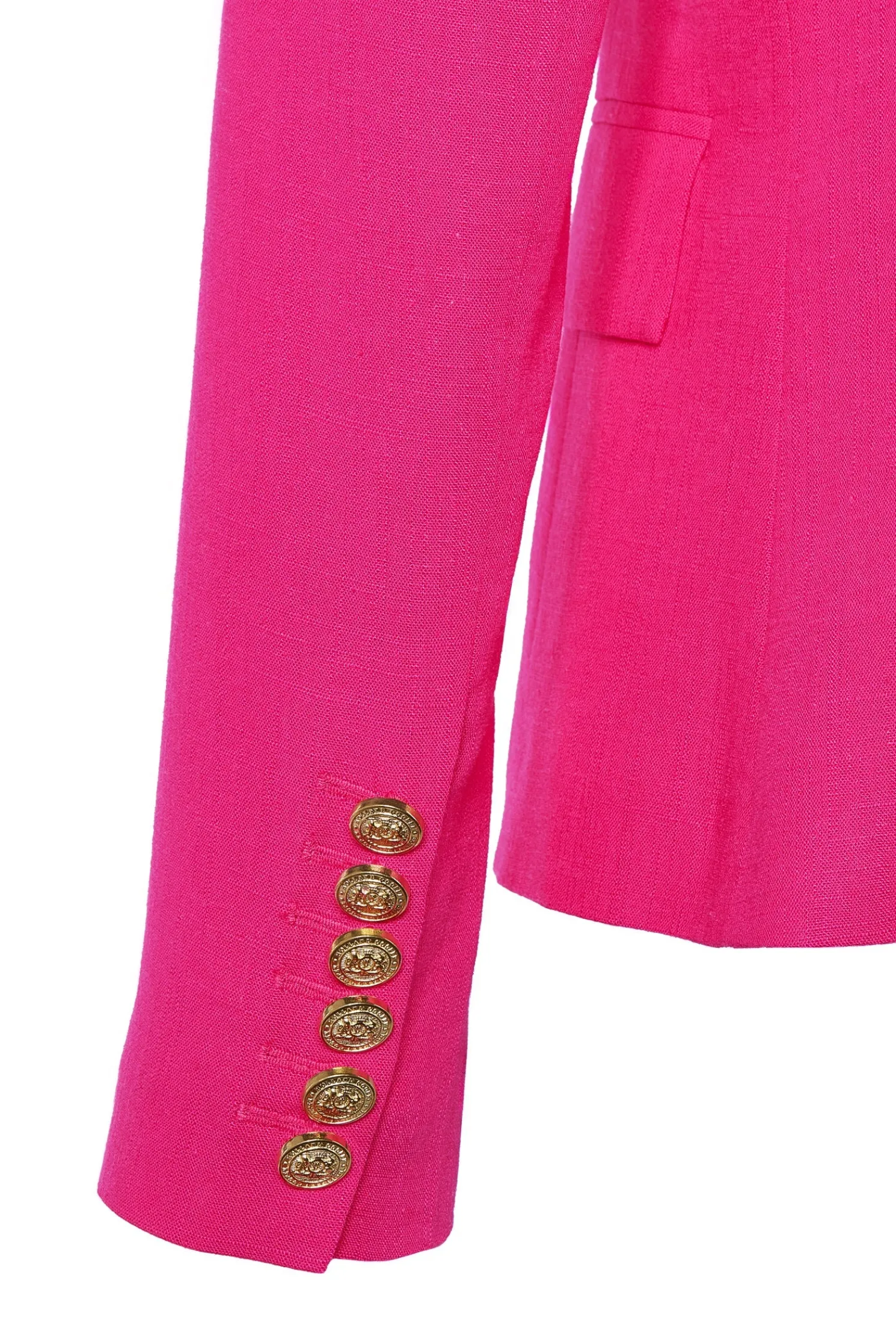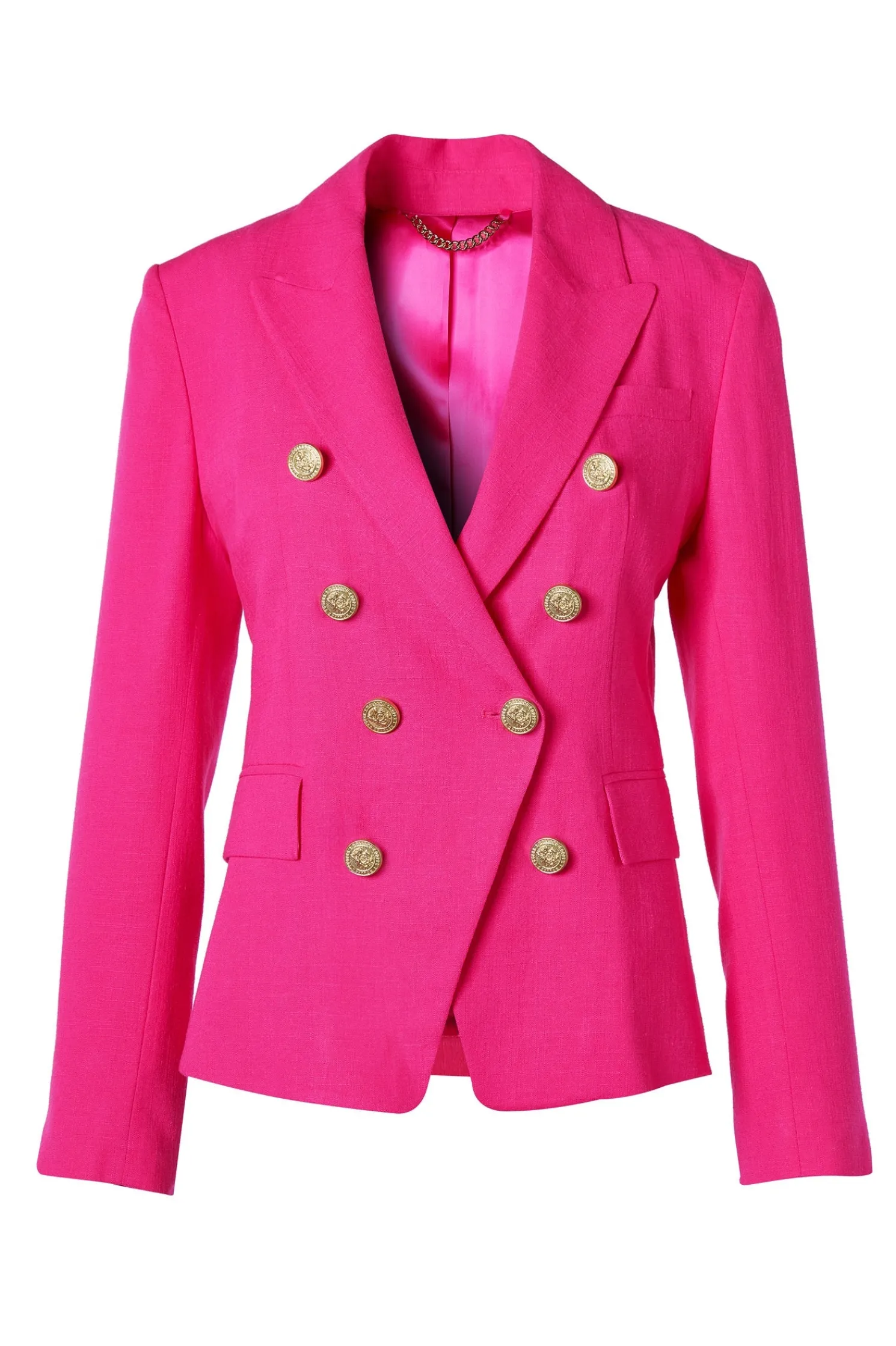Designed to create a sharp tailored silhouette worn open or closed, the Linen Knightsbridge Blazer has been handmade in the UK. Crafted from a crease-resistant, lightweight and breathable linen blend & fully lined with a luxury stretch lining for extra comfort, this piece is a must-have for your summer wardrobe. Elevated with HC signature gold hardware to the front and cuffs, the bold colour makes for a chic and contemporary statement. Wear yours with jeans or pair with our matching Tailored Shorts.