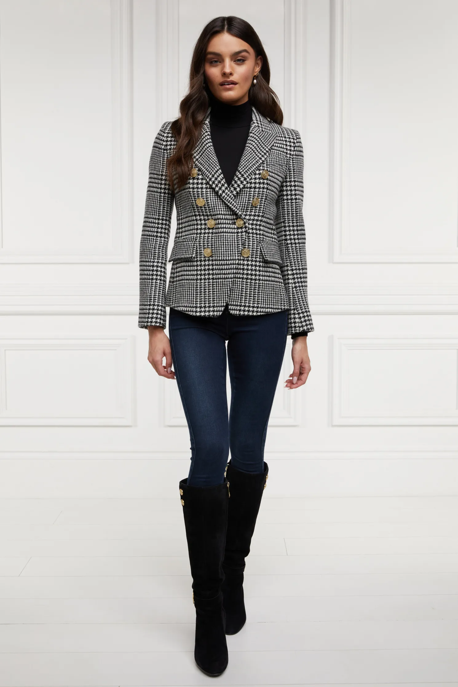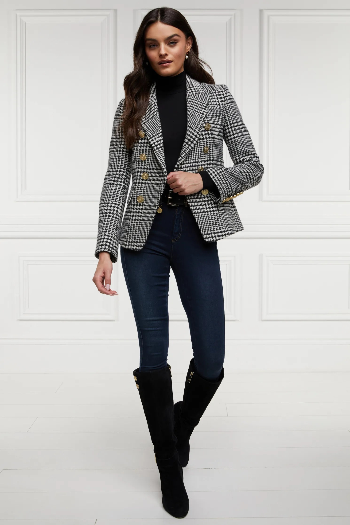 Made from wools woven in the UK, this blazer has a slim, double-breasted silhouette featuring HC’s signature crested rivets. Precisely tailored to ensure a sharp and tailored profile worn open or closed, each blazer has been fully lined with a luxury stretch lining for comfort.