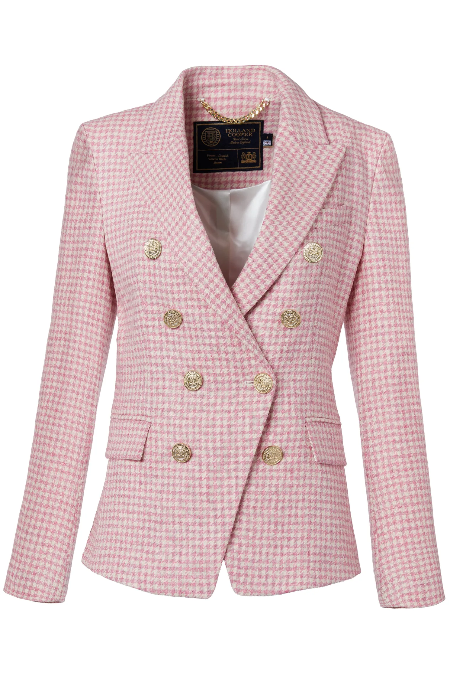 Made from wools woven in the UK, this blazer has a slim, double-breasted silhouette featuring HC’s signature crested rivets. Precisely tailored to ensure a sharp and tailored profile worn open or closed, each blazer has been fully lined with a luxury stretch lining for comfort. Elevated by bold lapels and subtly placed hip pockets, this wardrobe staple has been hand cut and made entirely in England.