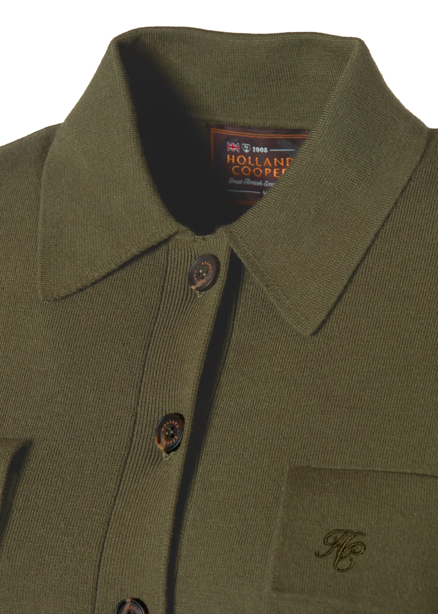 Crafted with a double knitting stitch, this beautiful overshirt offers a luxurious and cosy feel. Featuring two front chest pockets adorned with tonal HC embroidery, it adds a touch of refined detail. The horn effect buttons enhance its classic appeal, making it a versatile and elegant addition to any outfit. Perfect for layering or wearing on its own, this piece is essential for any well-curated wardrobe.