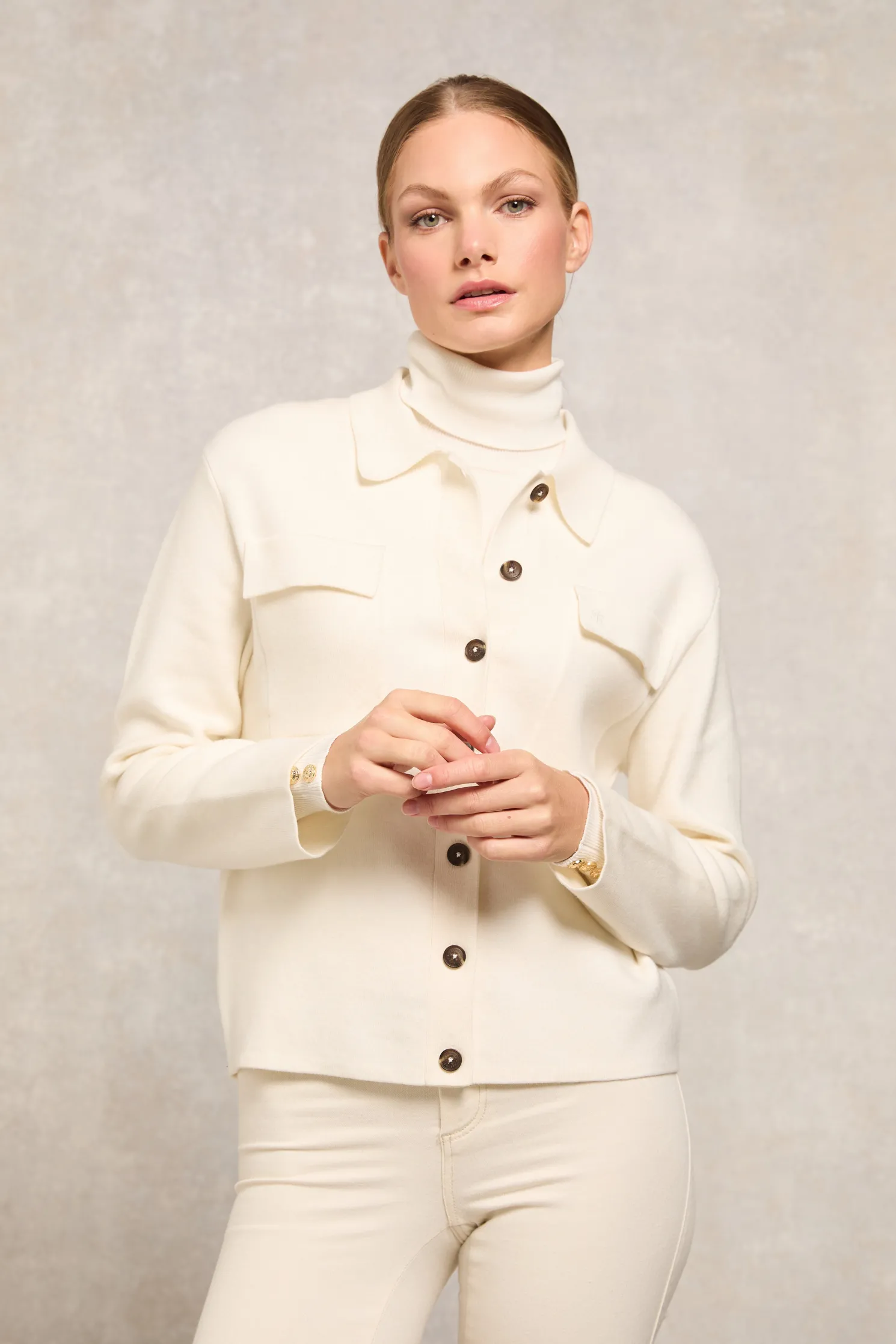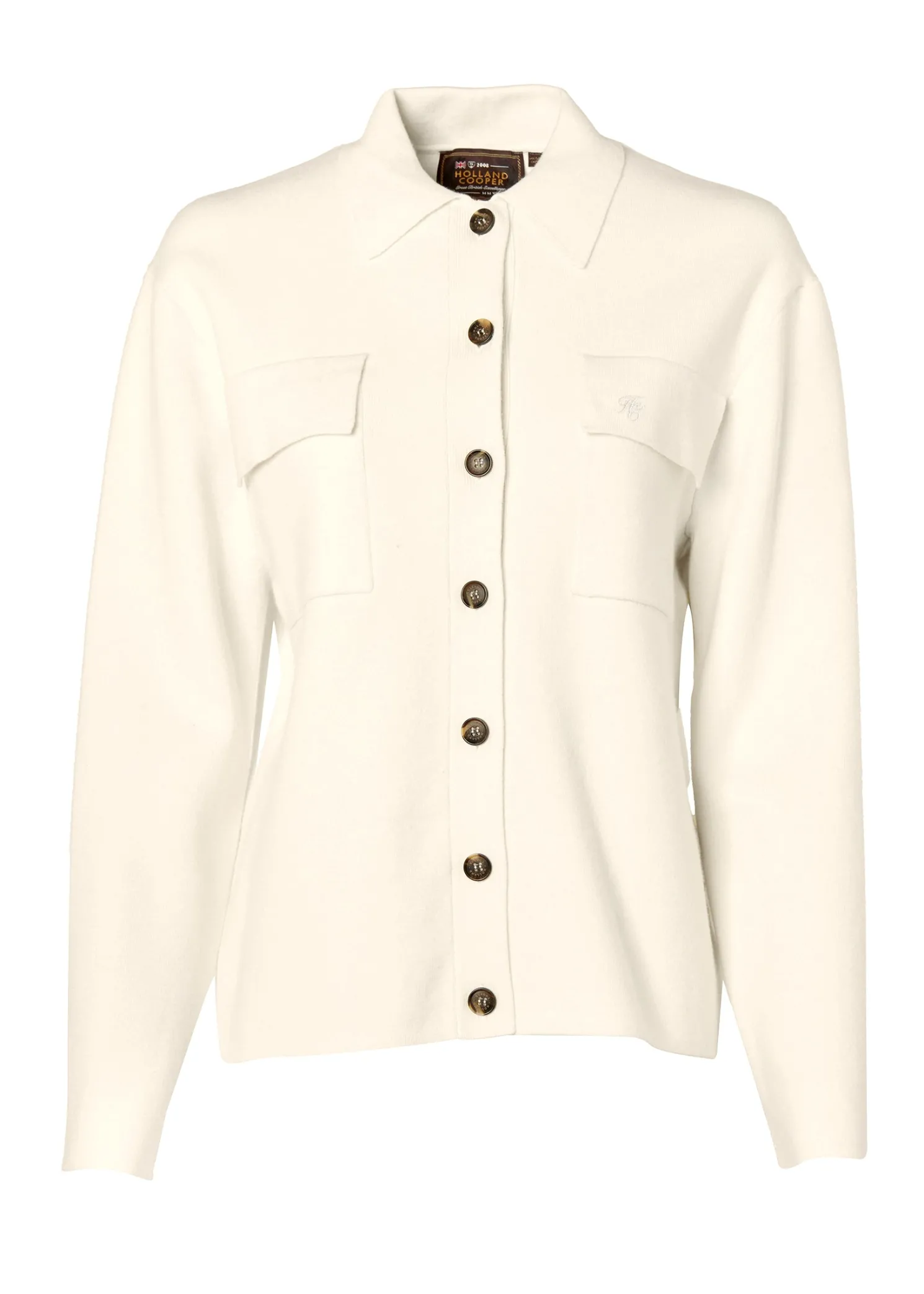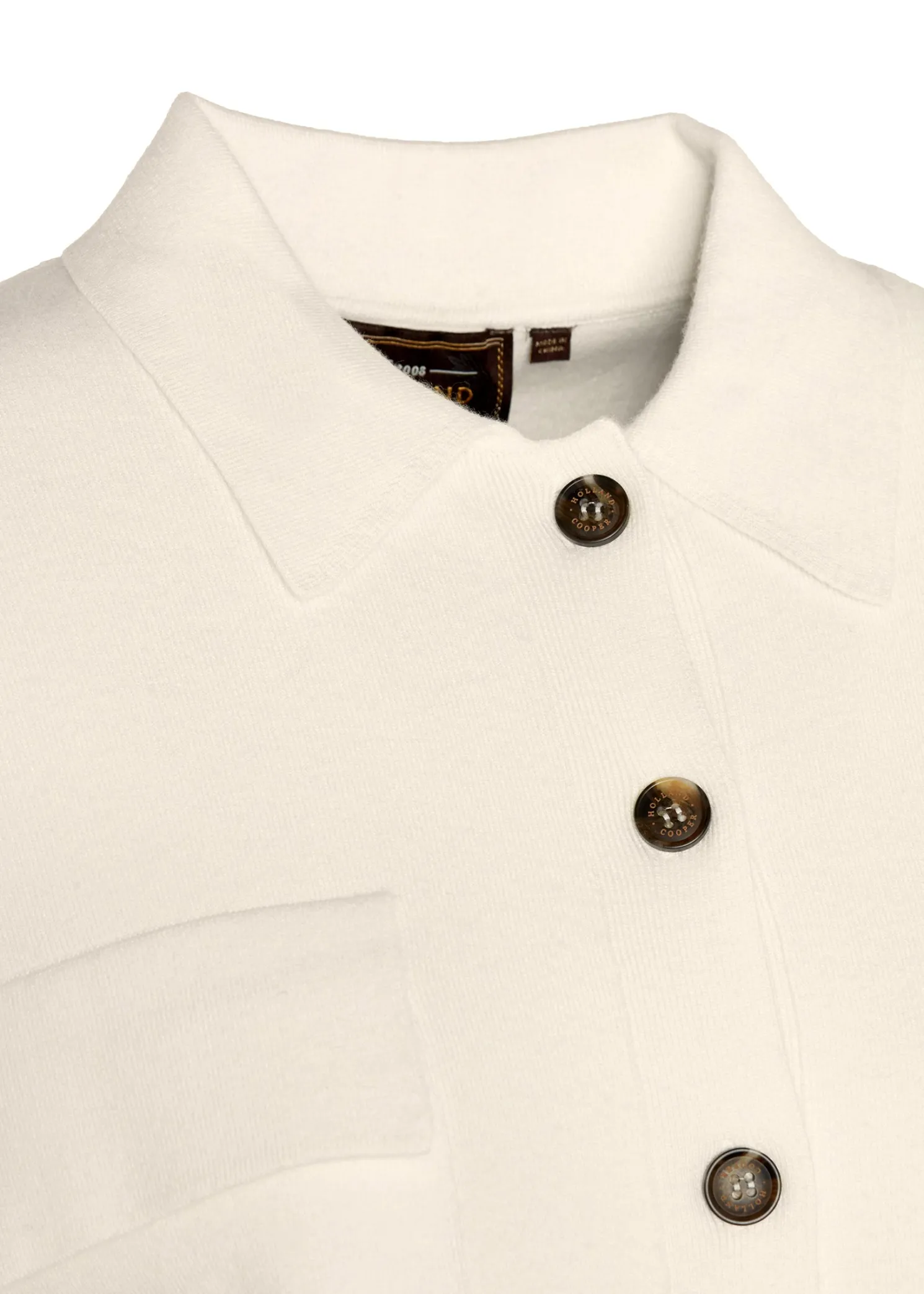 Crafted with a double knitting stitch, this beautiful overshirt offers a luxurious and cosy feel. Featuring two front chest pockets adorned with tonal HC embroidery, it adds a touch of refined detail. The horn effect buttons enhance its classic appeal, making it a versatile and elegant addition to any outfit. Perfect for layering or wearing on its own, this piece is essential for any well-curated wardrobe.