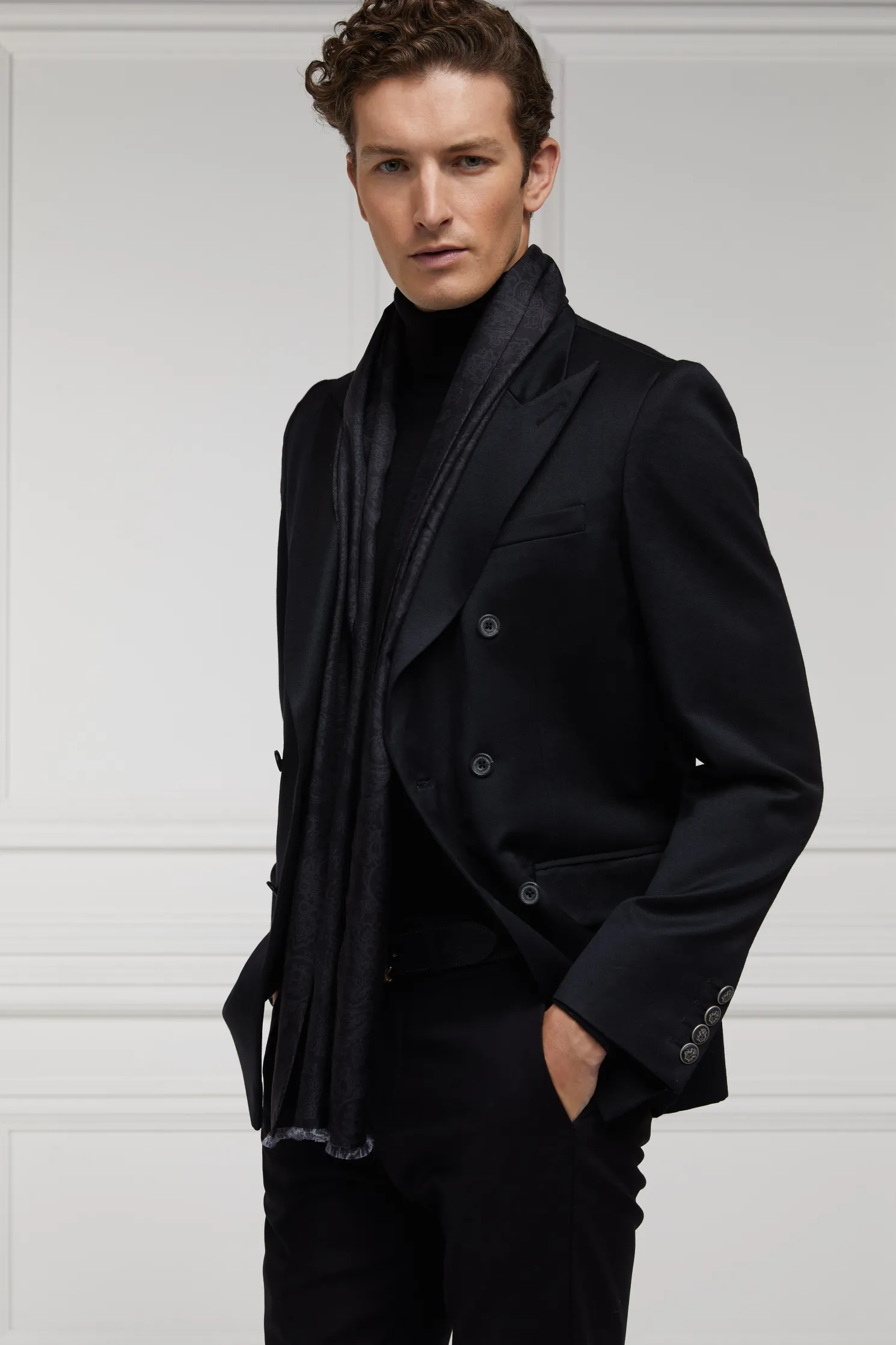 Expertly made in the UK from 100% silk, our first men’s scarf has been designed with a traditional and intricate paisley motif showcasing a classic and timeless era of menswear. Finished with long fringed ends, each scarf has been meticulously crafted and finished by hand, ensuring each one is a unique piece of art. Designed to be a versatile accessory in every man’s wardrobe, this scarf wears perfectly with our Cheltenham Coat for an elevated and contemporary look. You could also pair with an evening suit for a timeless and distinguished ensemble.