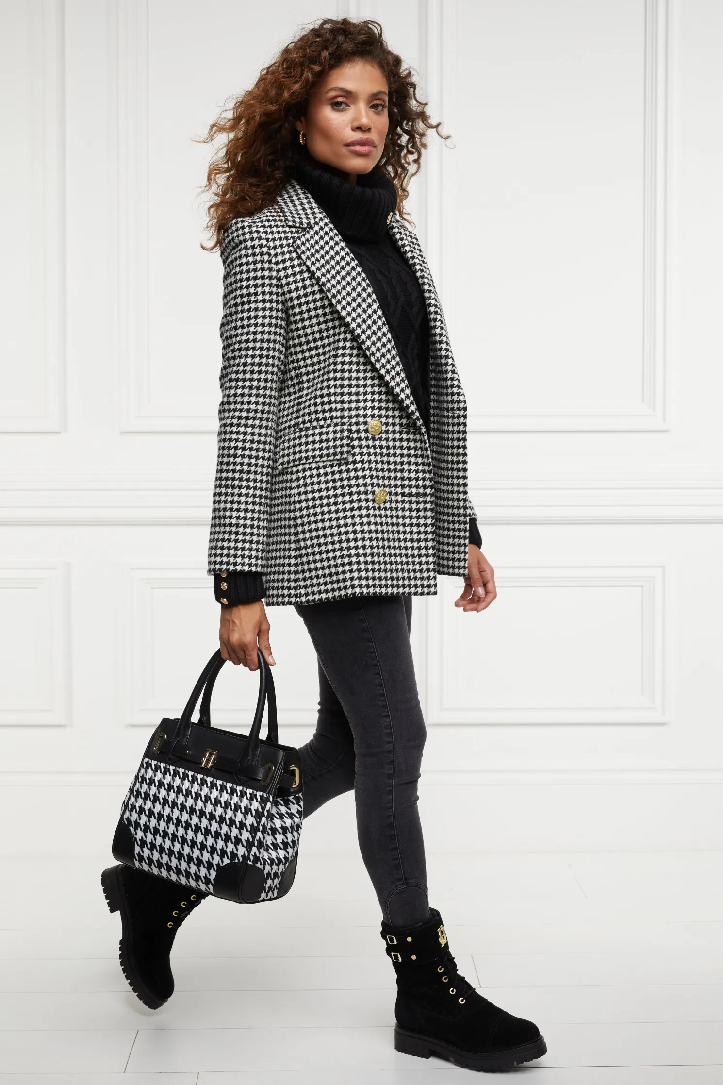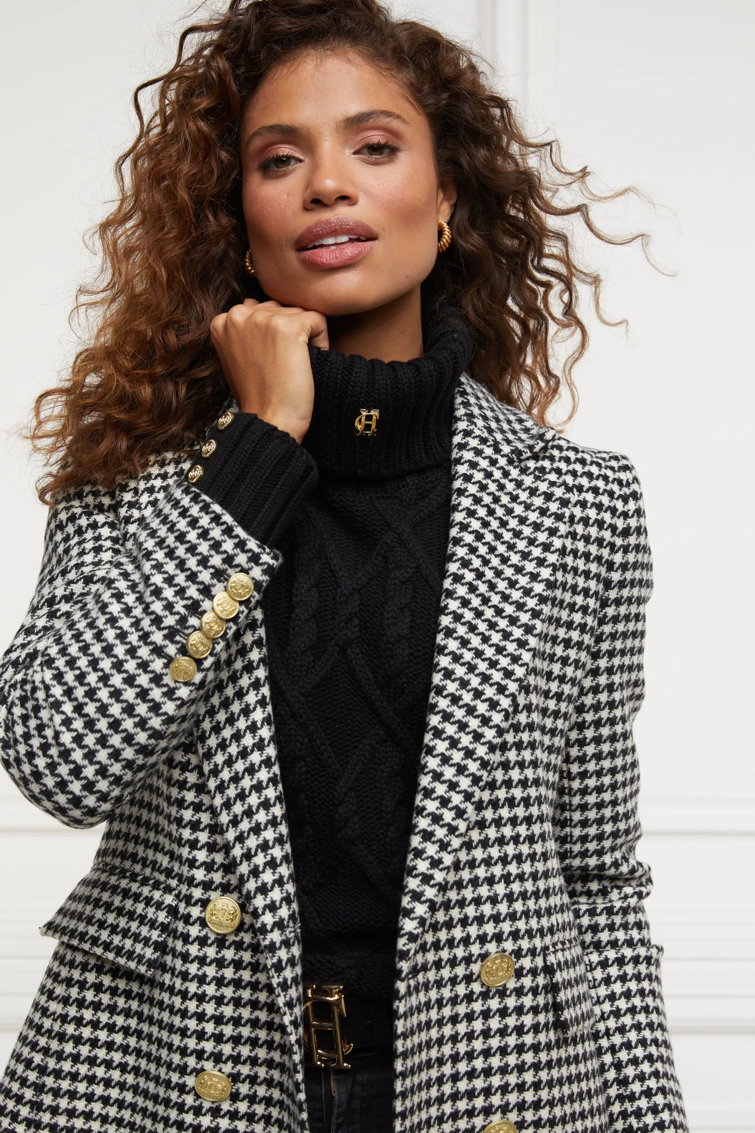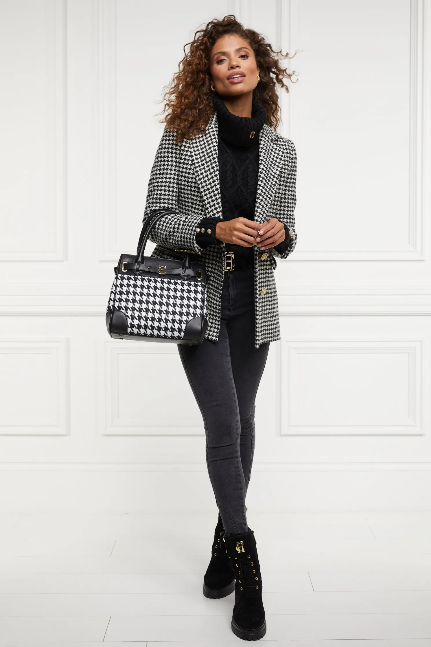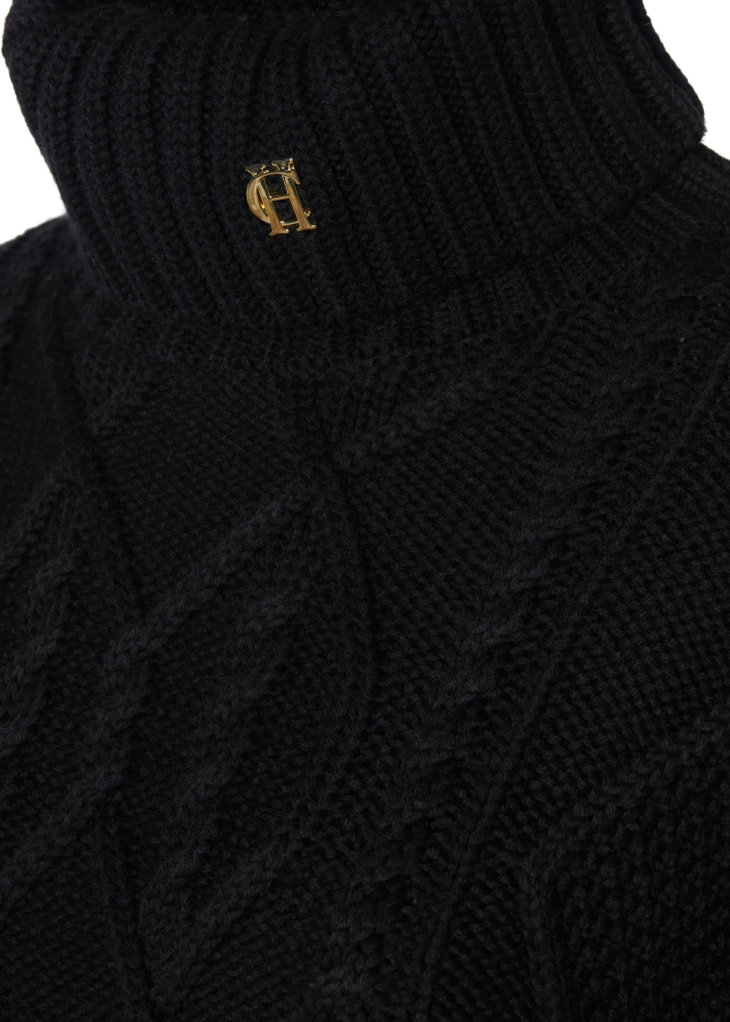 Crafted from sumptuously soft yarns with a modern cable knit design, the boxy fit and drop shoulder makes for a contemporary look & feel. Elevated with our signature gold rivets on the cuffs and HC hardware to the collar.