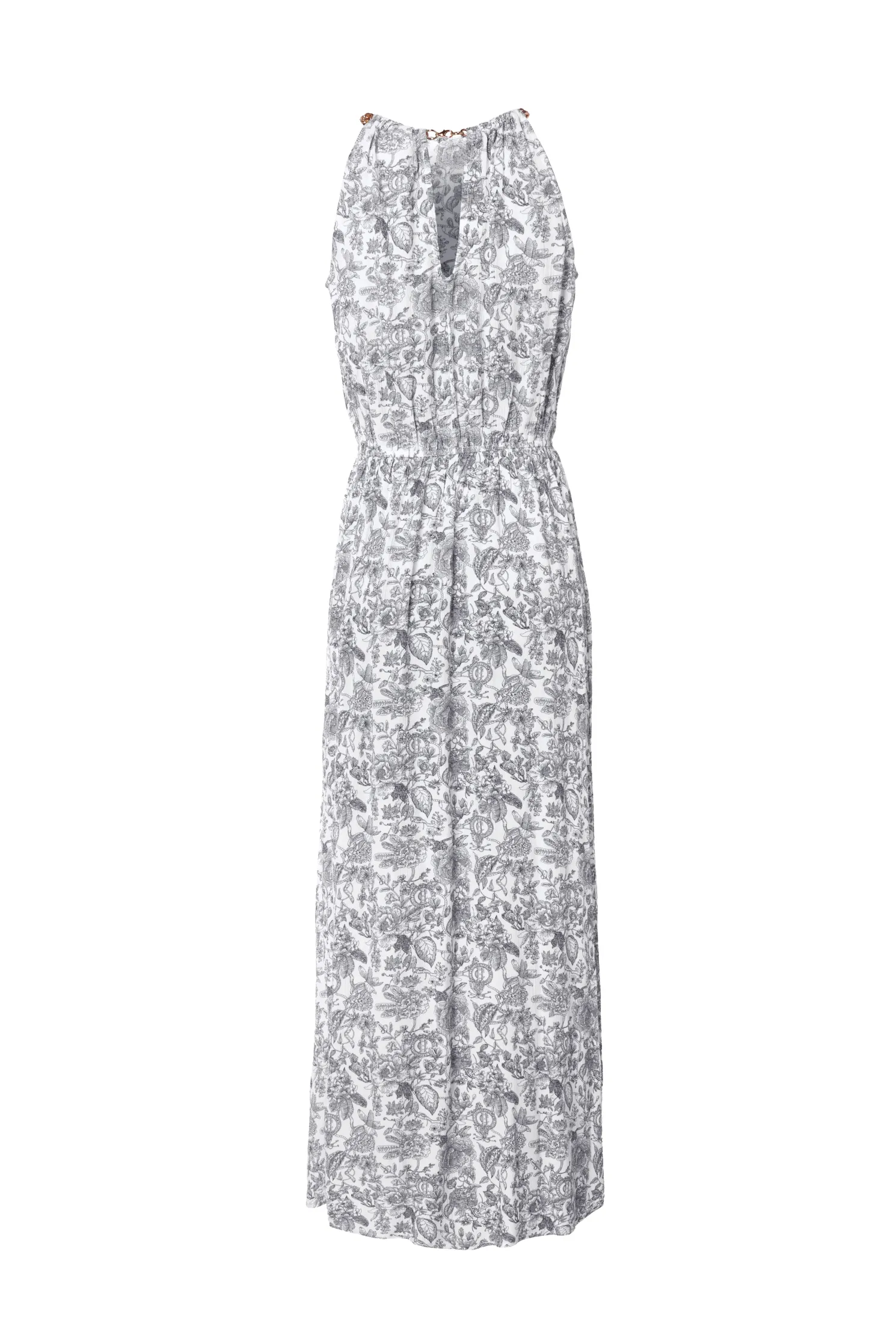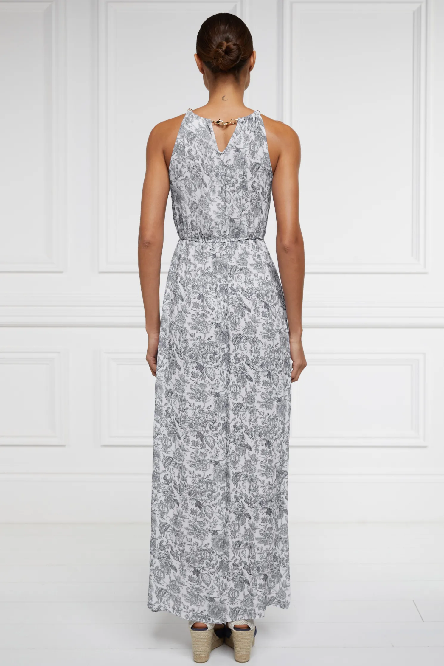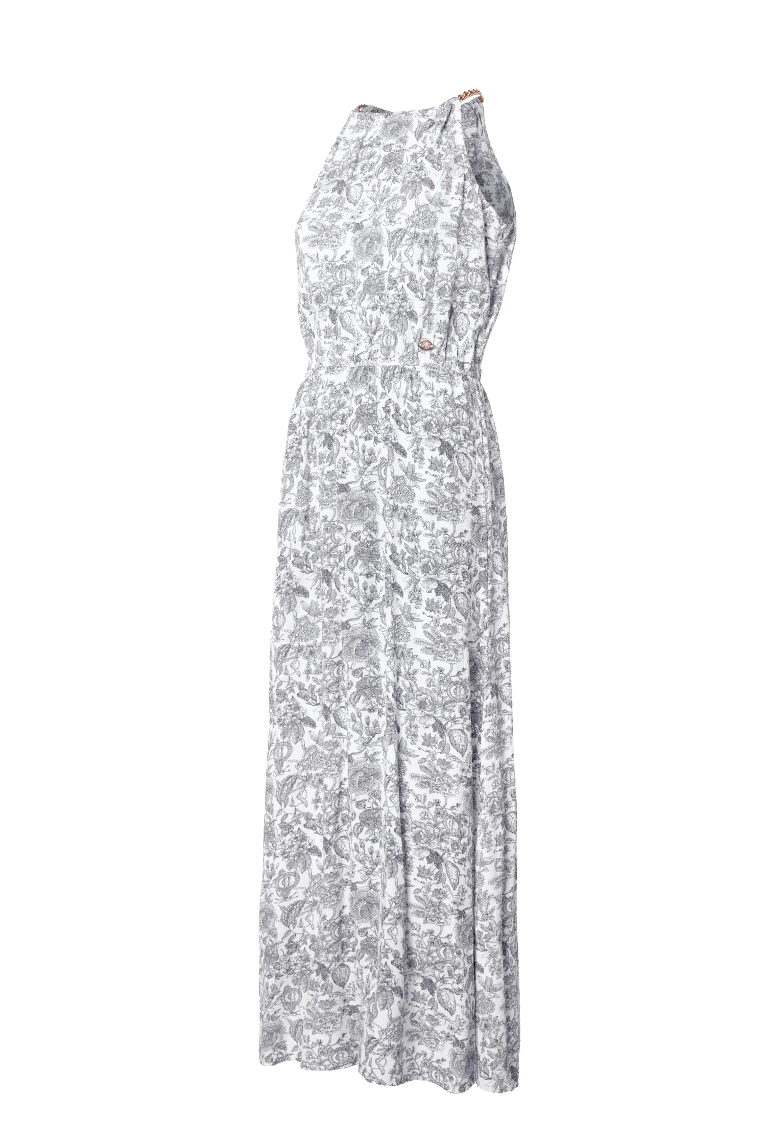 Designed with a halter neckline, this feminine dress has been created with a relaxed silhouette and floaty fit. With a cinched-in waist, the skirt bottom has a subtle side split detail.