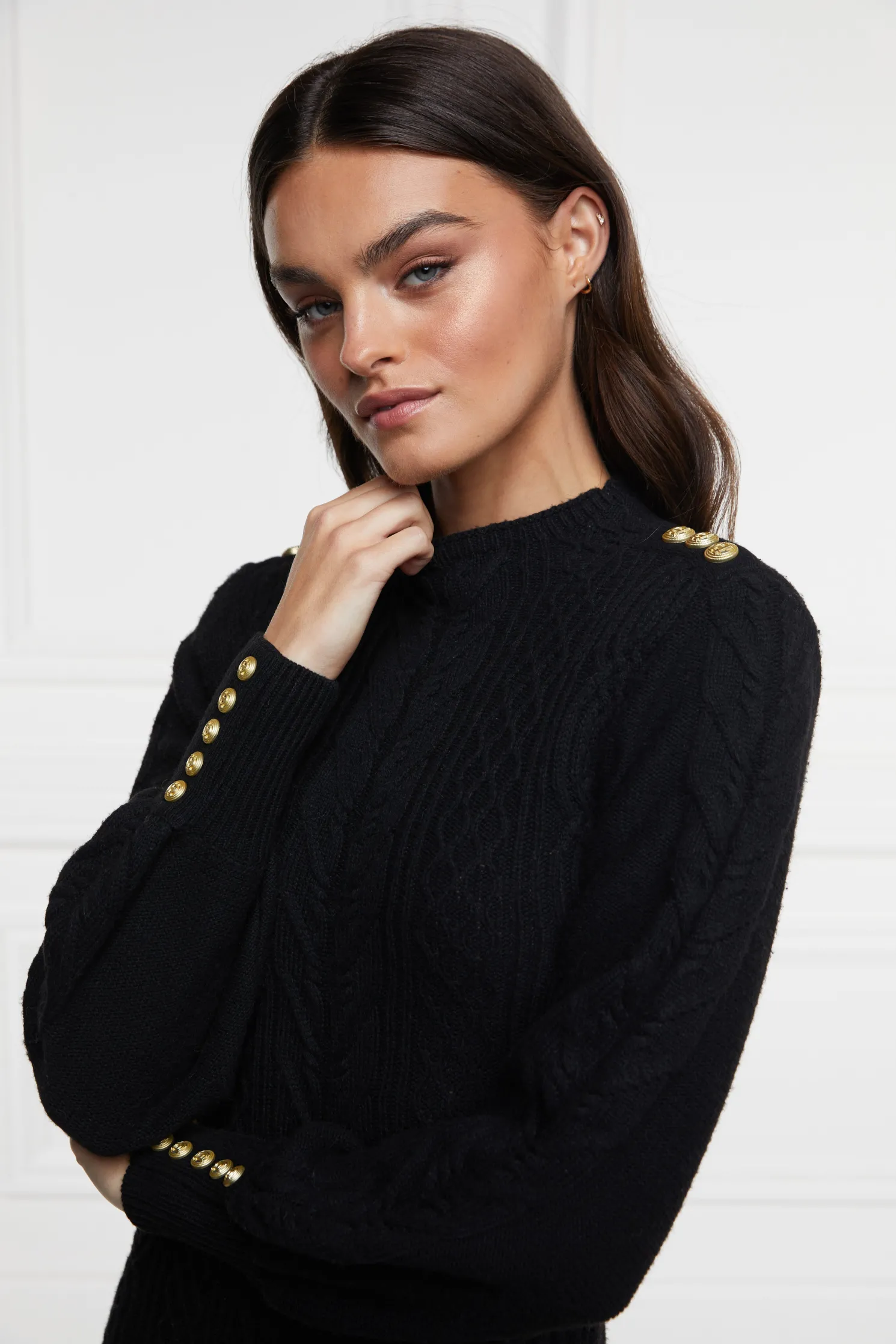 Designed with voluminous sleeves and a high neck, this knitted dress is both feminine and elegant. Created with a fit and flare silhouette with a maxi length, this dress has been beautifully detailed with subtle cable knit panelling to the body and sleeves. Finished with our iconic HC rivets.