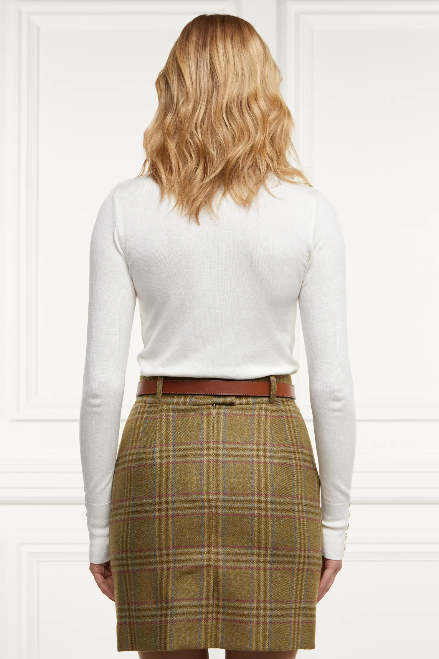 Enhanced by our iconic signature gold medallion, this classic pencil skirt is a timeless staple for your wardrobe. Handmade in the UK from English wools, it has a figure-hugging silhouette that has been designed to sit on the waist. Fully lined for comfort with a concealed zip on the back, this skirt has been created to fit perfectly into your everyday wardrobe.