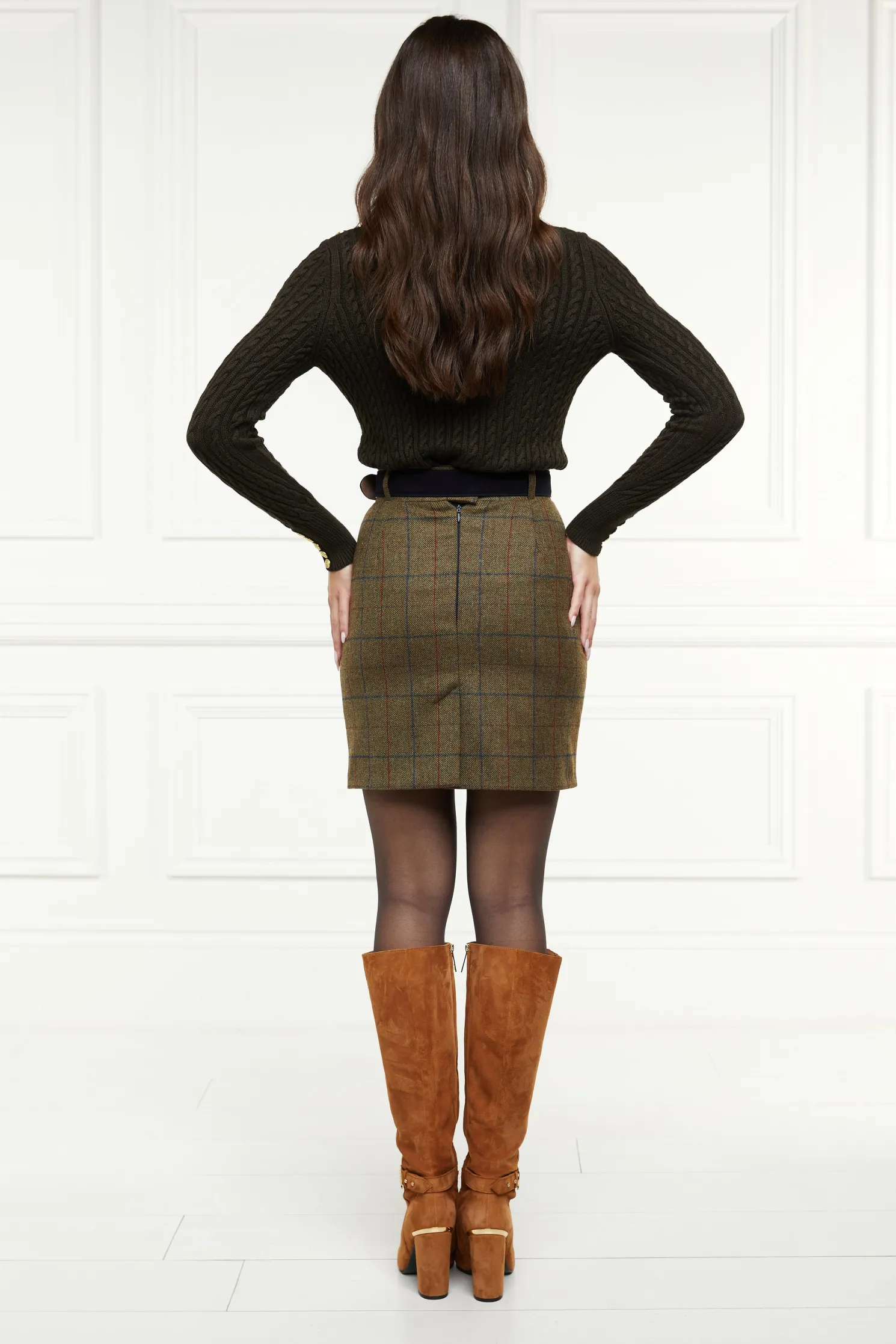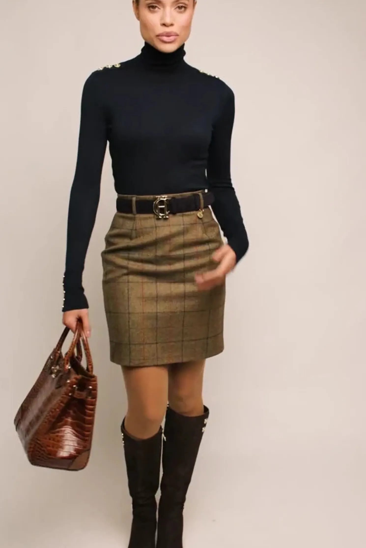 This classic pencil skirt is a timeless staple for your wardrobe, perfectly tailored with an elegant silhouette. Fully lined and has a concealed zip on the back for easy entrance adorned with our iconic gold HC hardware.