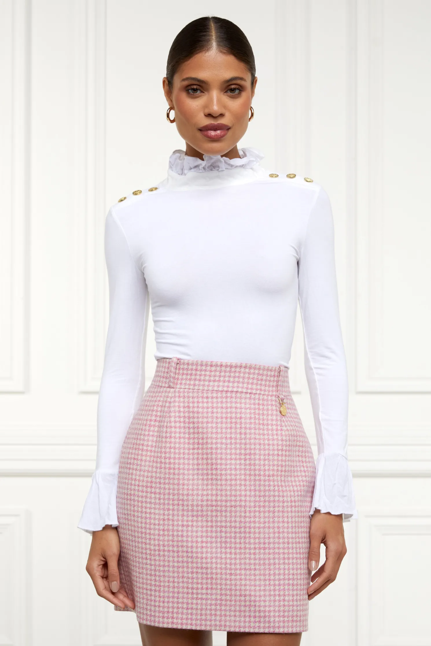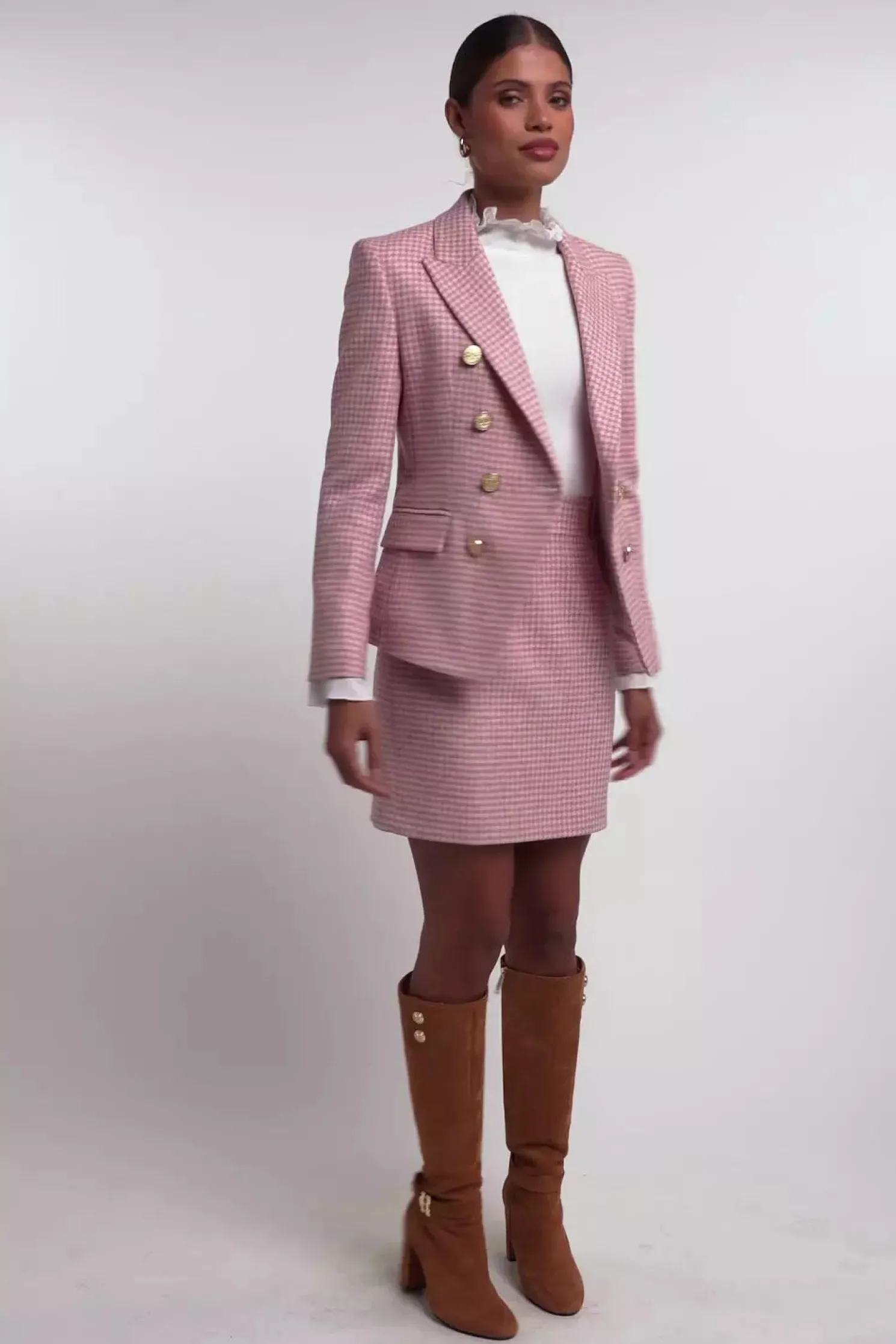 Enhanced by our iconic signature gold medallion, this classic pencil skirt is a timeless staple for your wardrobe. Handmade in the UK from English wools, it has a figure-hugging silhouette that has been designed to sit on the waist. Fully lined for comfort with a concealed zip on the back, this skirt has been created to fit perfectly into your everyday wardrobe.