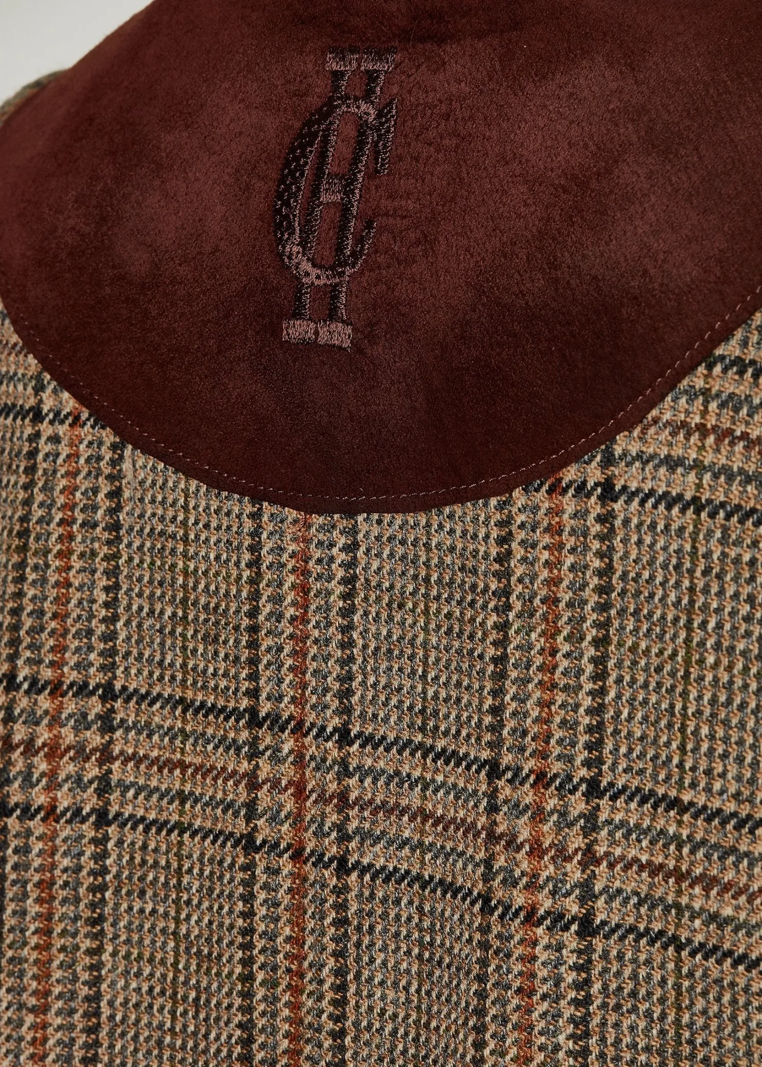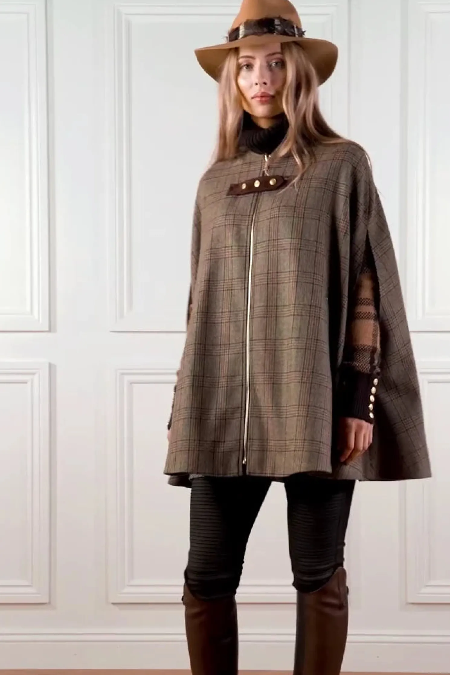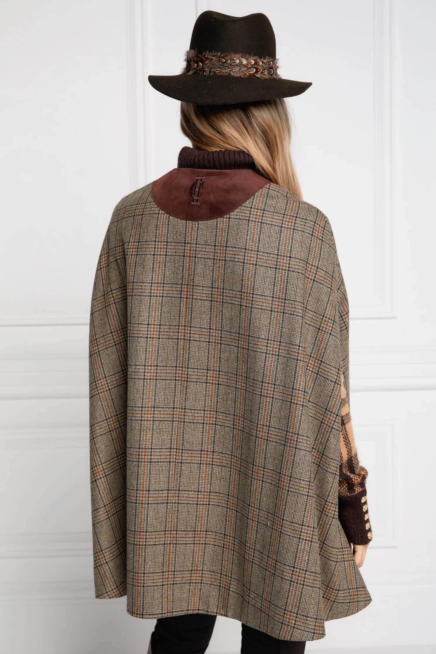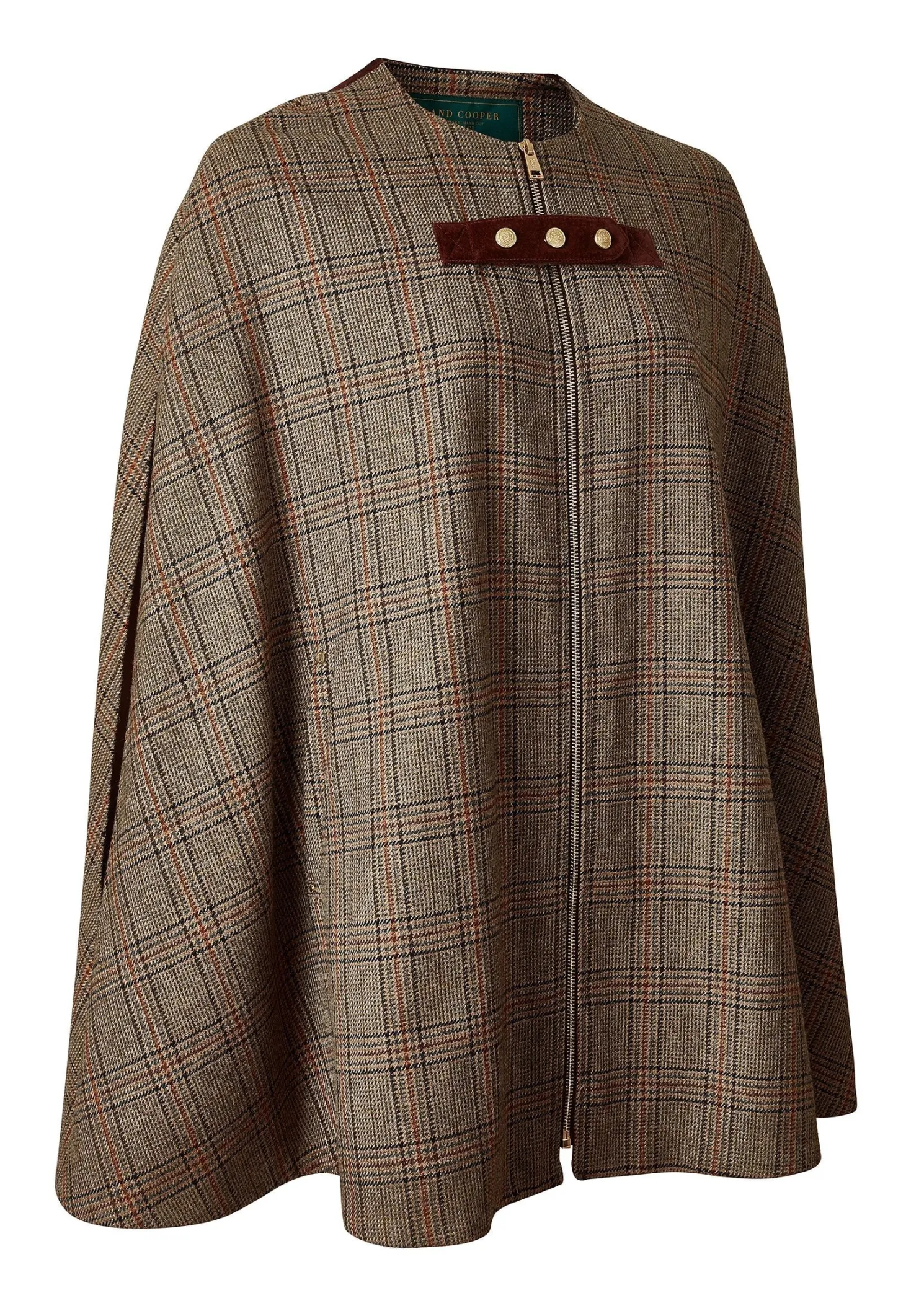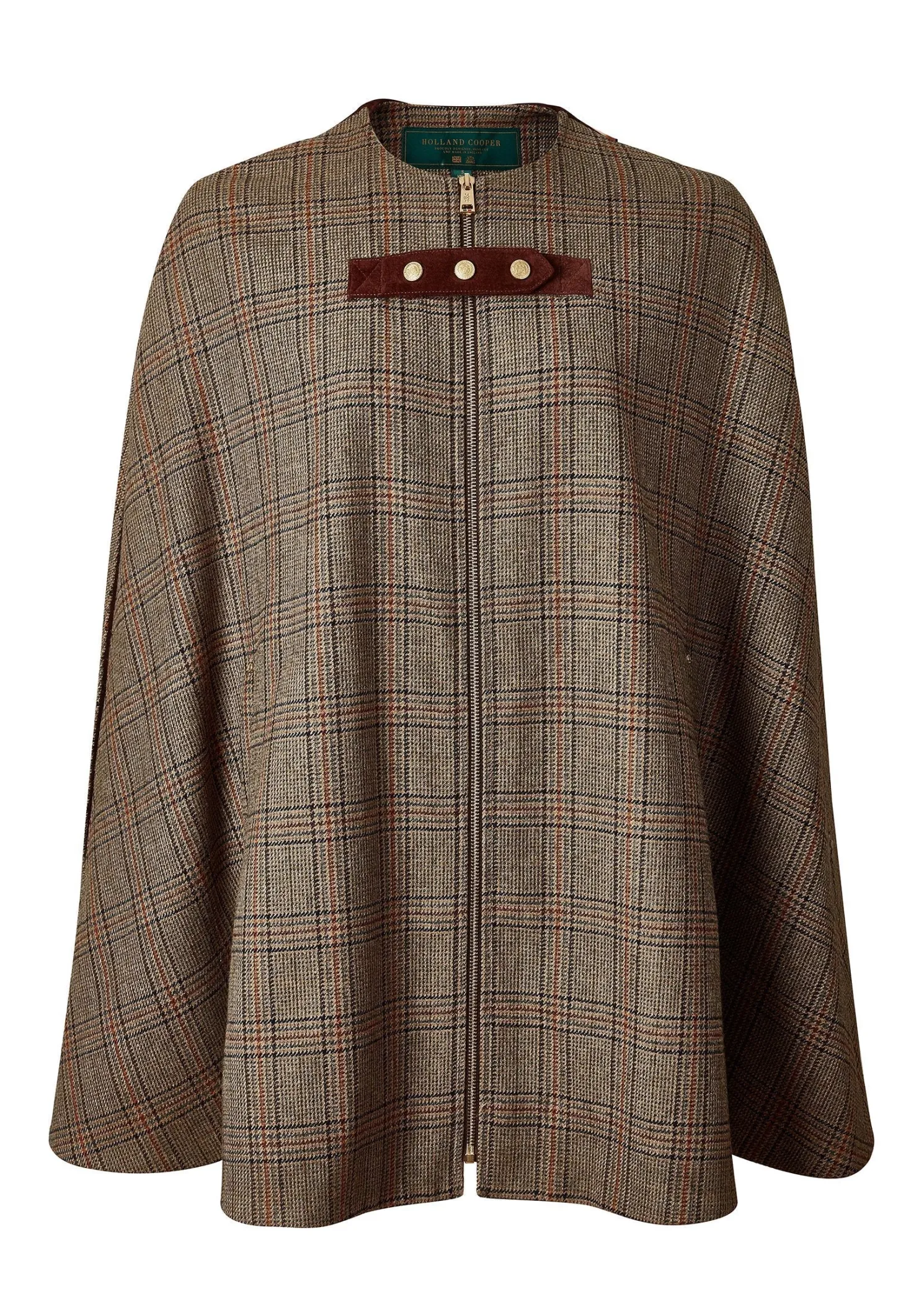 This elegant cape is made from British wools and trimmed with authentic suede. The close fit across the shoulders ensures comfort and ease of movement. This product has been hand cut and made in England.