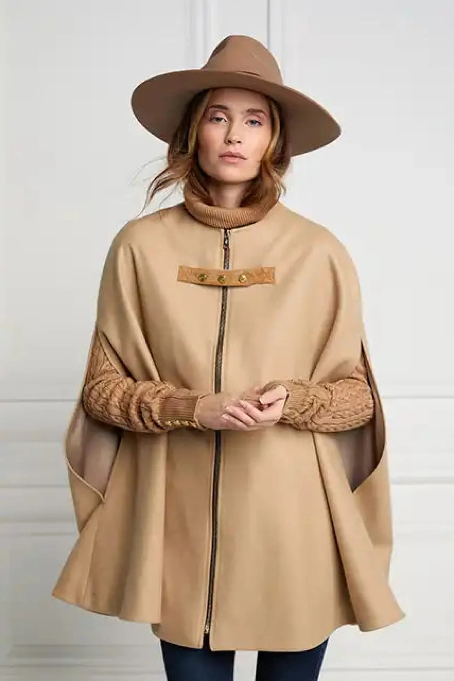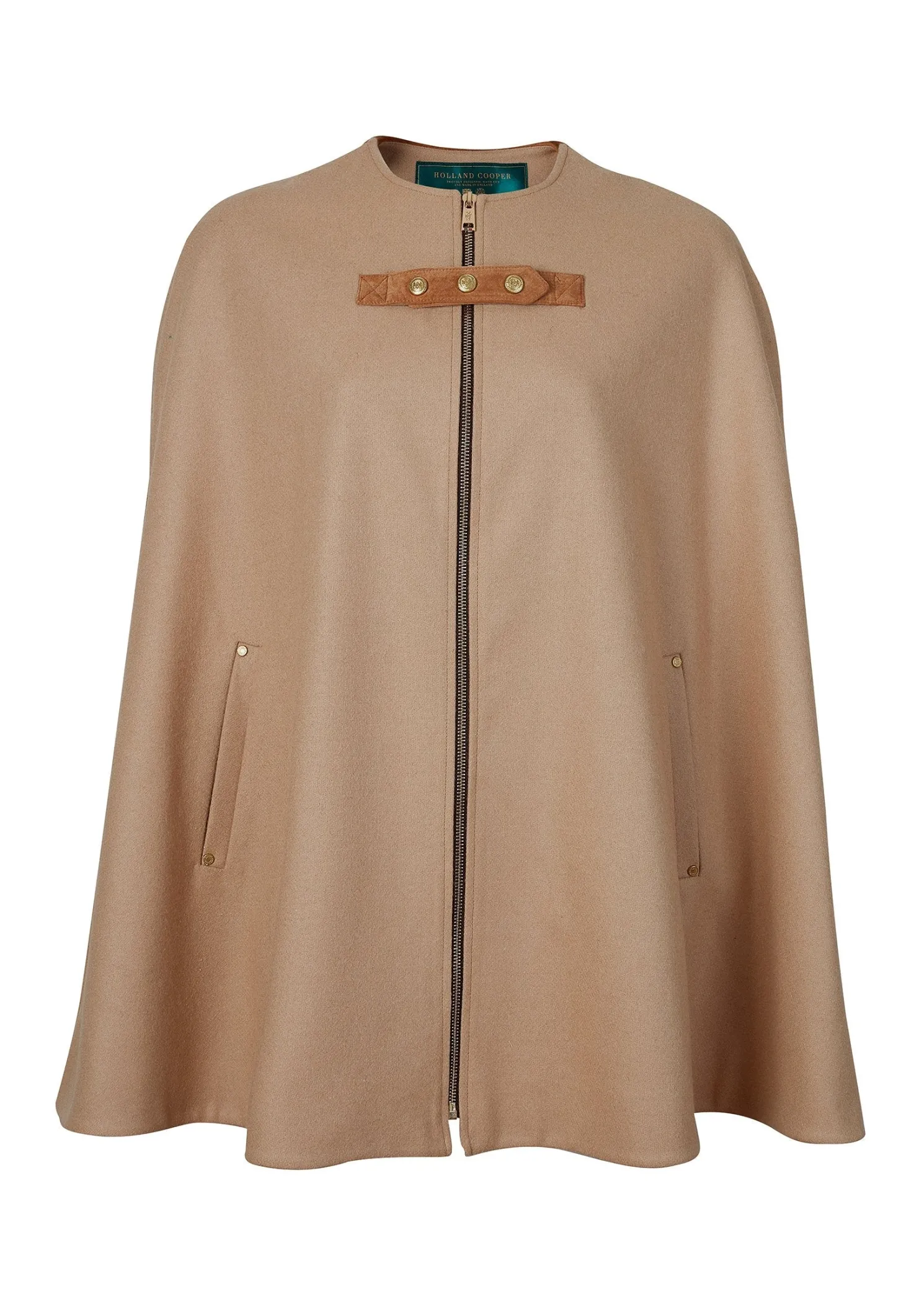 This elegant cape is made from British wools and trimmed with authentic suede. The close fit across the shoulders ensures comfort and ease of movement. This product has been hand cut and made in England.