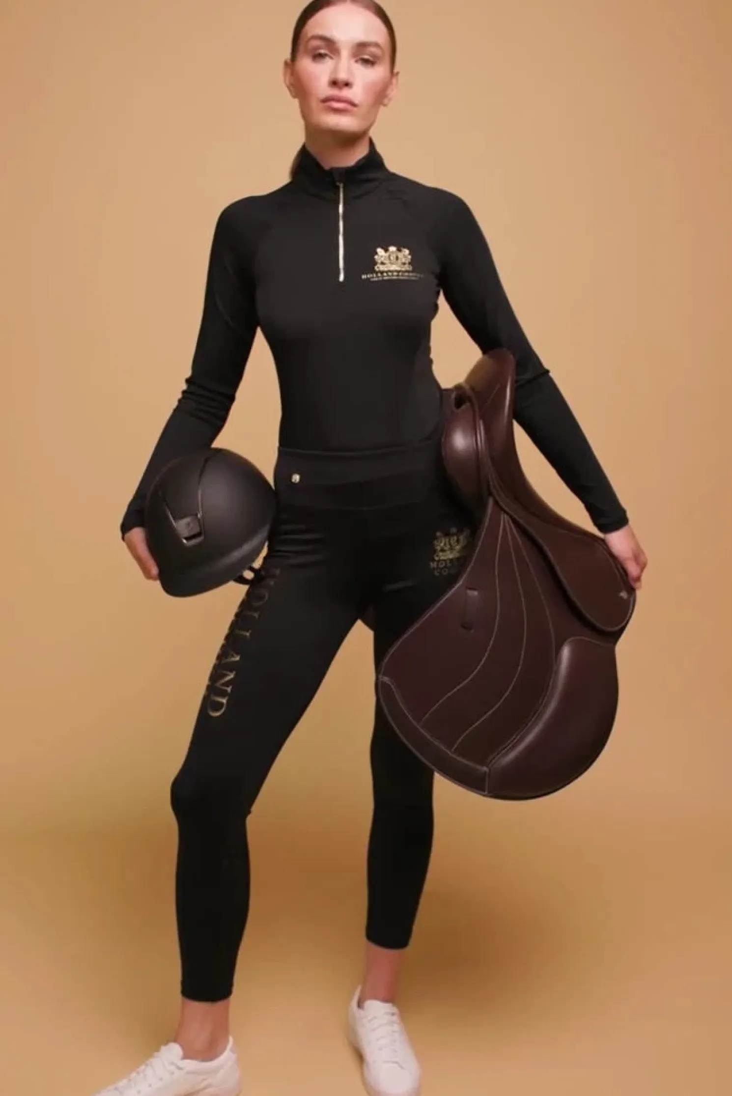 Our technical riding legging are designed to ensure maximum movement and comfort whilst in and out of the saddle. Our high-waisted, body contouring compression fabric feels like a second skin and allows for flexibility of movement. Complete with HC monogram grip to the inner thighs for increased control in the saddle. Finished with our signature gold hardware.