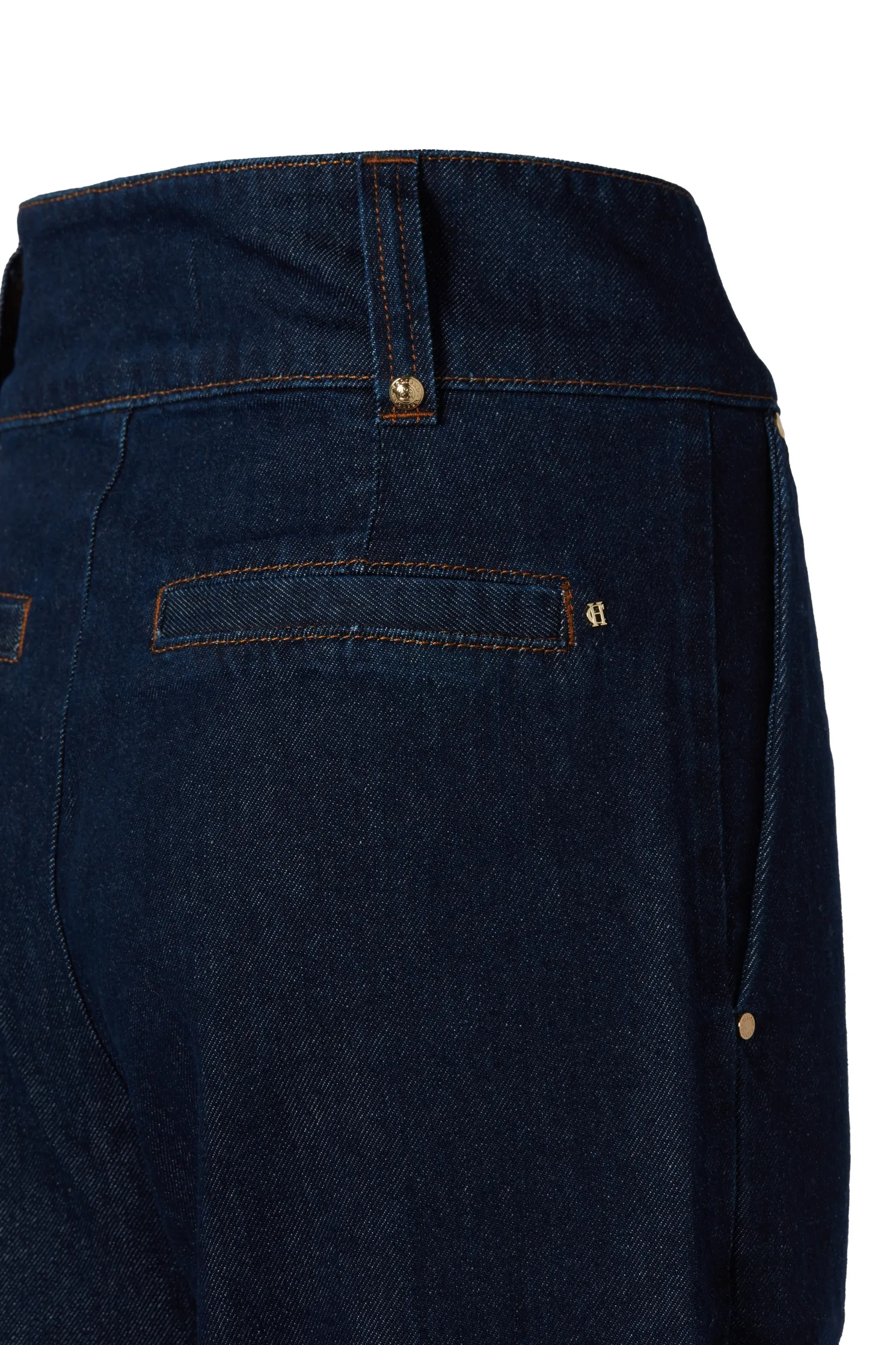 Simple and refined, these wide-leg jeans have been cut with the same silhouette as our iconic tailored trousers. Cut from soft denim with a high rise waist, the pleated fronts have been designed to create an elegant drape over the leg. Elevated with classic jean pockets and accentuated with our signature gold hardware, these jeans are the perfect combination of smart and casual.