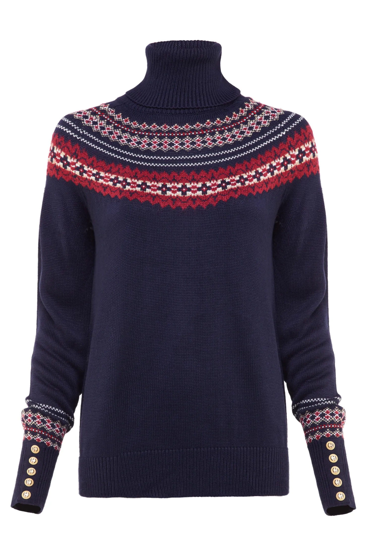 Created with a classic fairisle design that stretches across the shoulders, this knit has been designed with a relaxed fit. Made from a super soft and lightweight yarn with a cosy roll neck and ribbed cuffs. Detailed with our iconic HC branding.